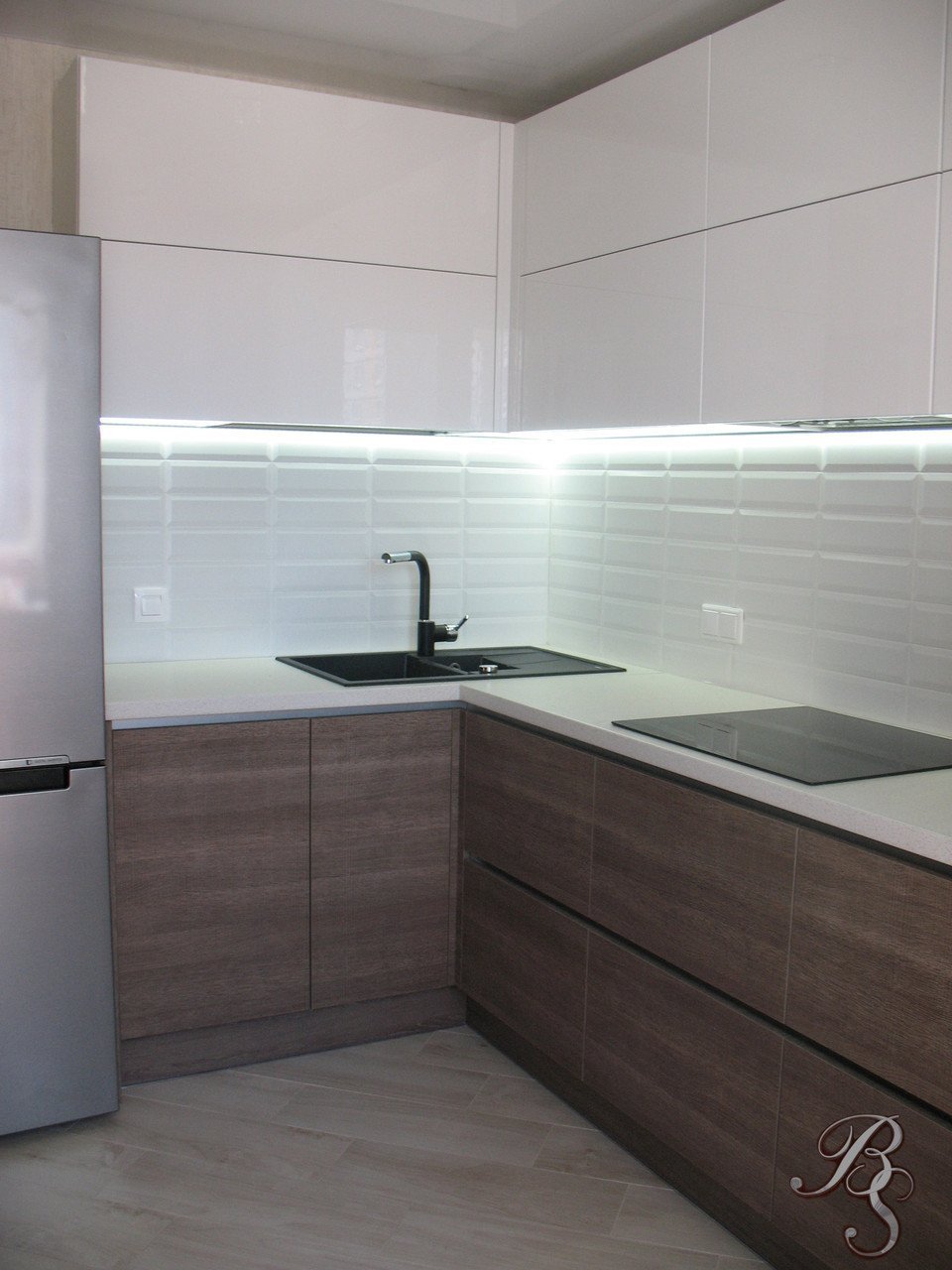 Кухня белый глянцевый верх