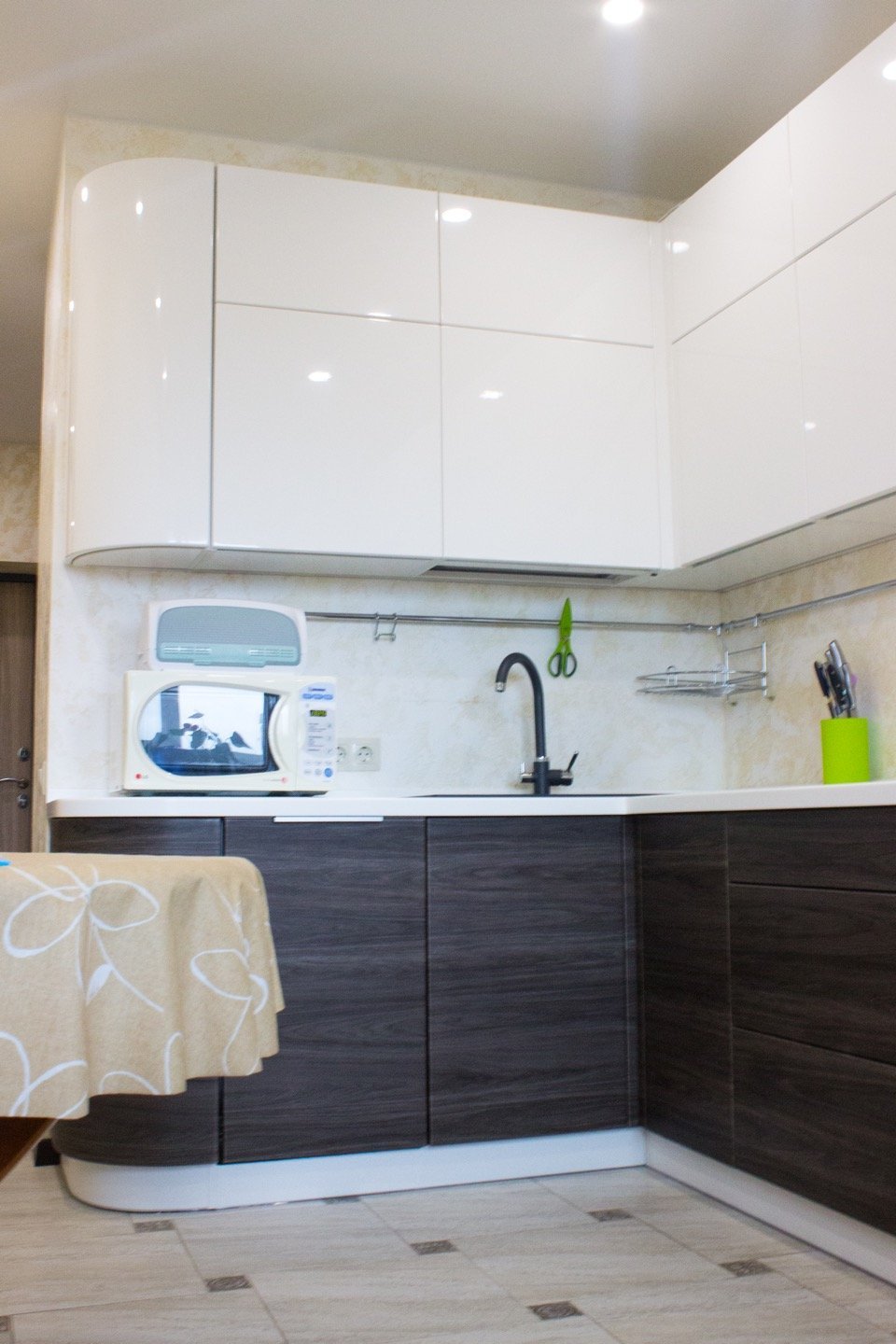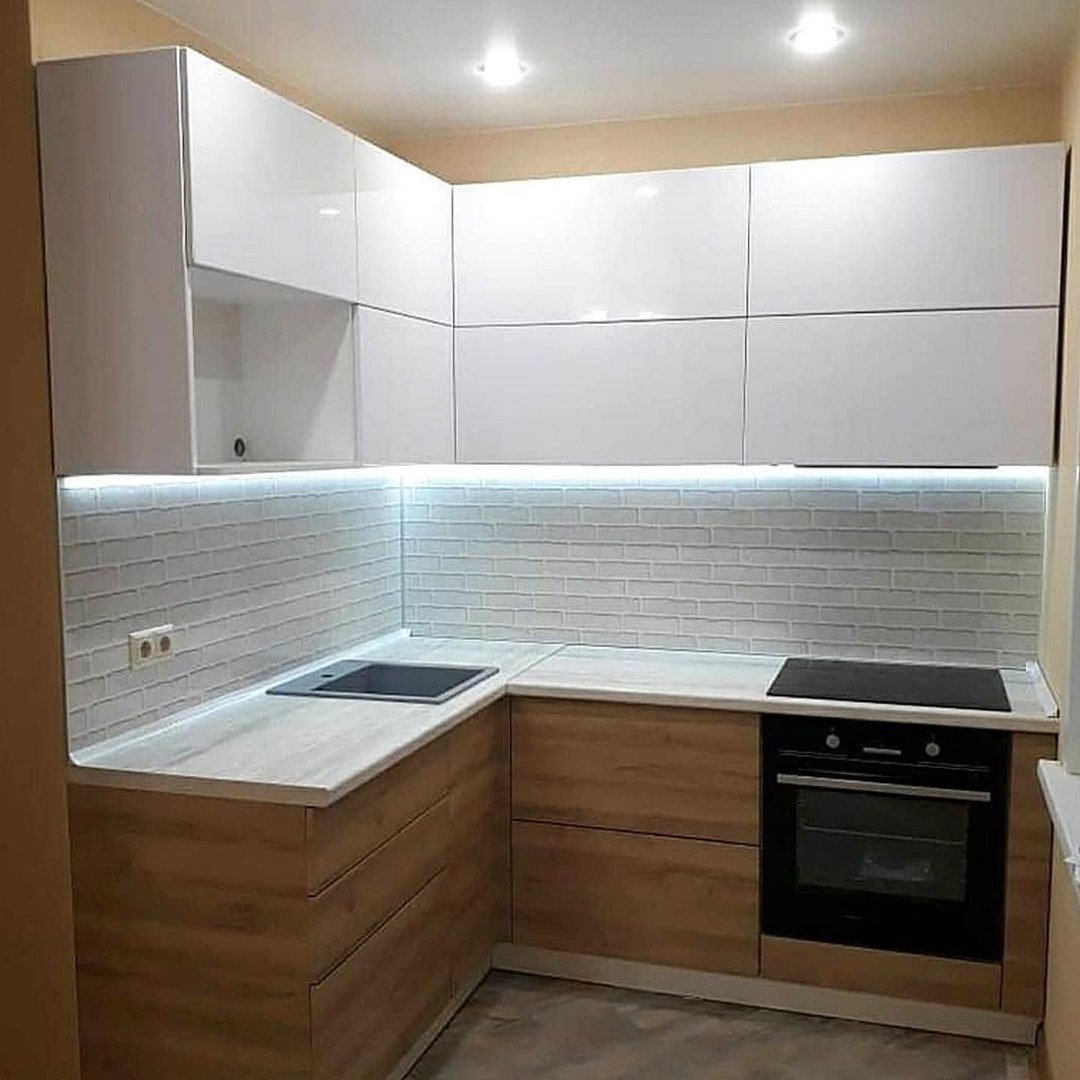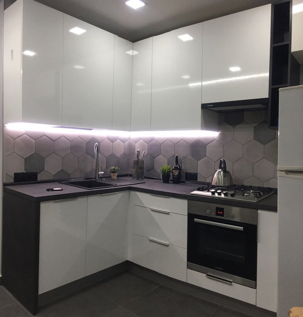 Белый глянцевый кухонный гарнитур в хрущевке