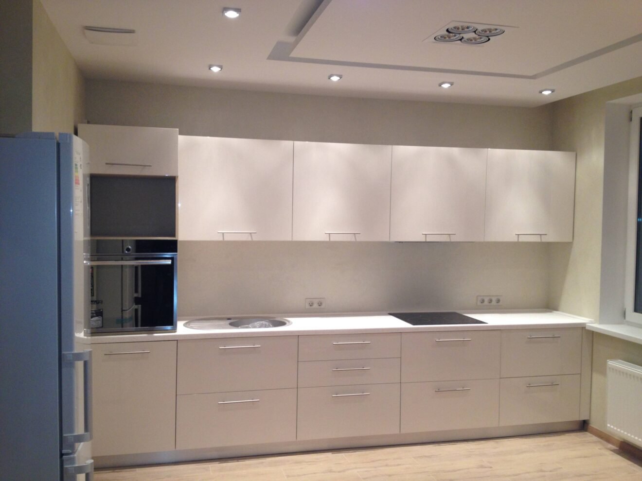 Светло серая глянцевая кухня