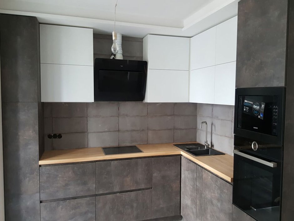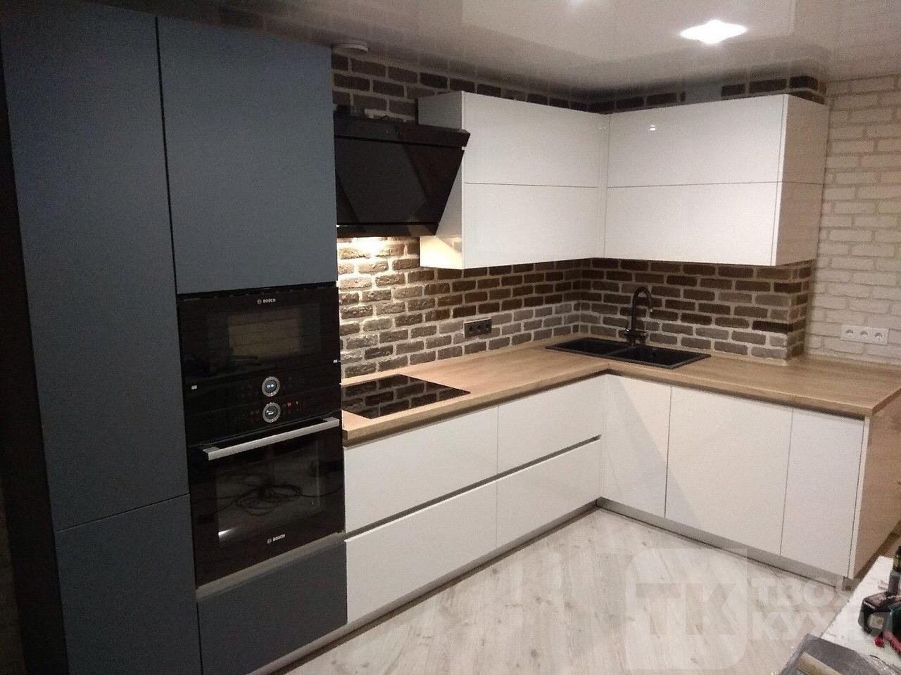 Кухня угловая лофт белый глянец