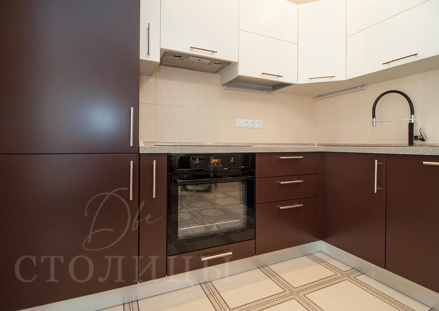 Кухня бежево шоколадная матовая