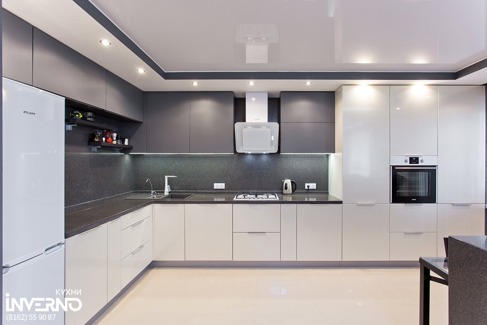 Кухни низ белый глянец верх серый мат