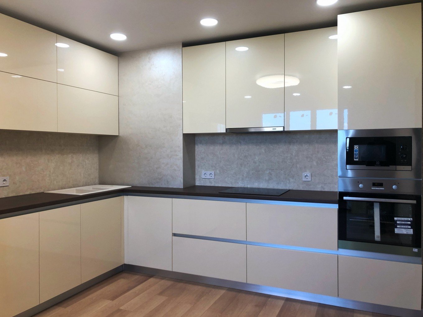 Угловая кухня с интегрированными ручками
