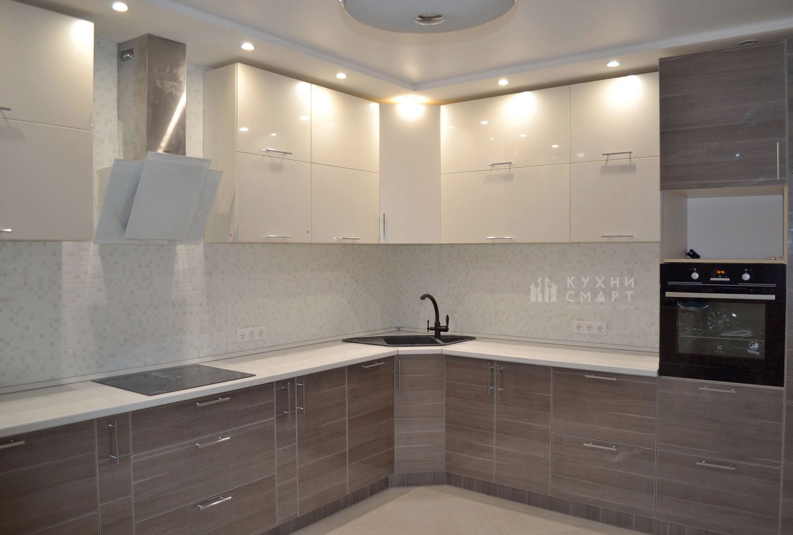 Угловая кухня белый глянец