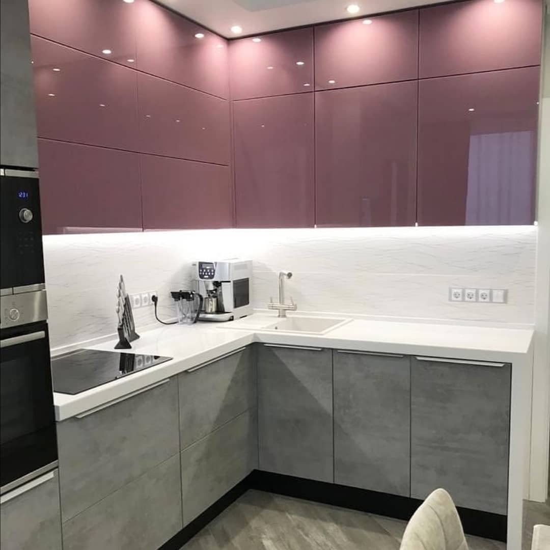Угловые кухни пудрового цвета