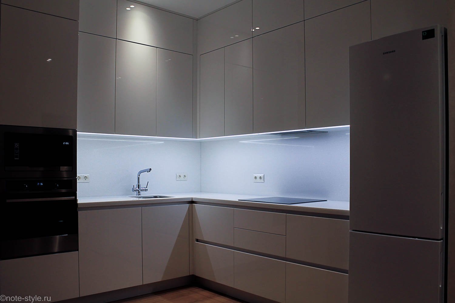 Кухни белые глянцевые угловые
