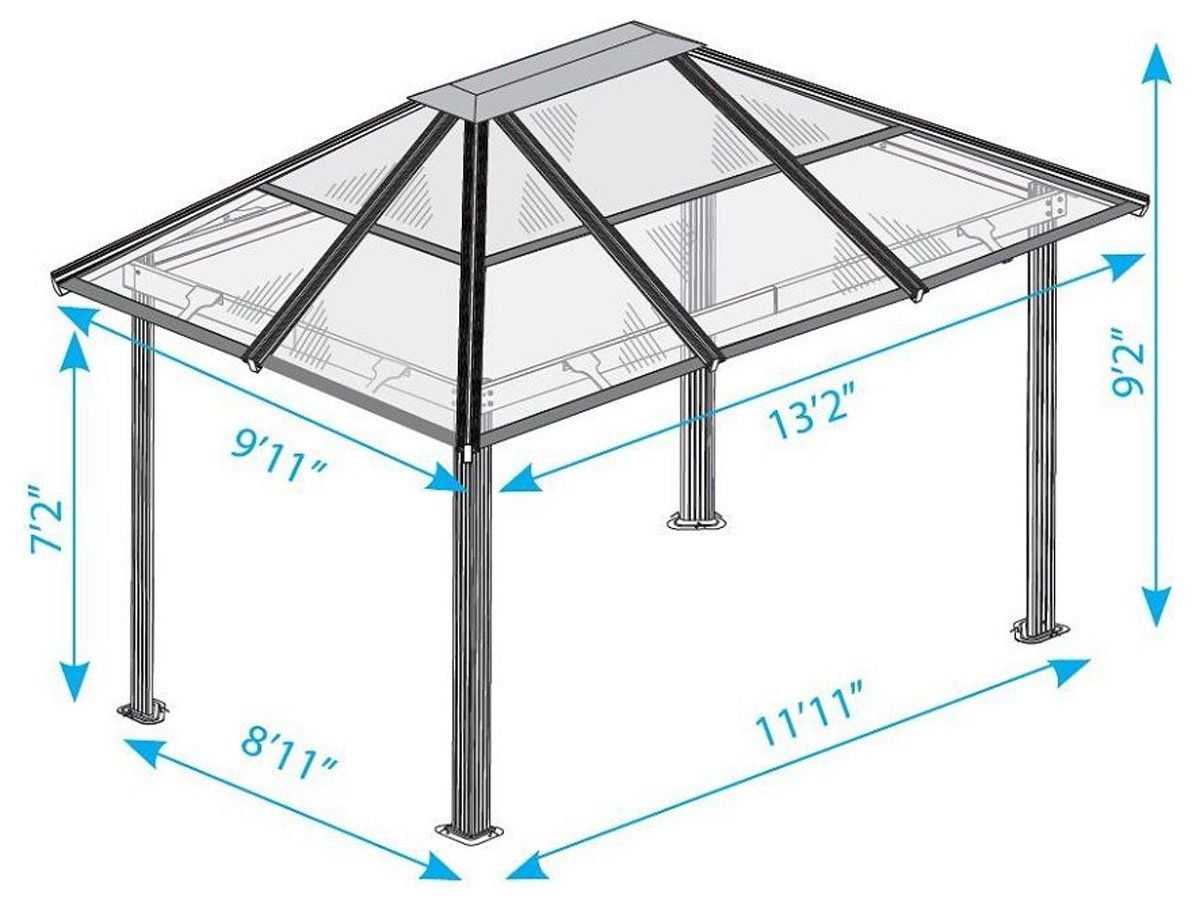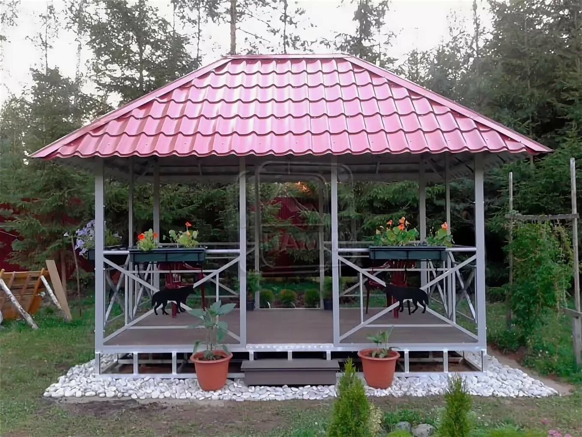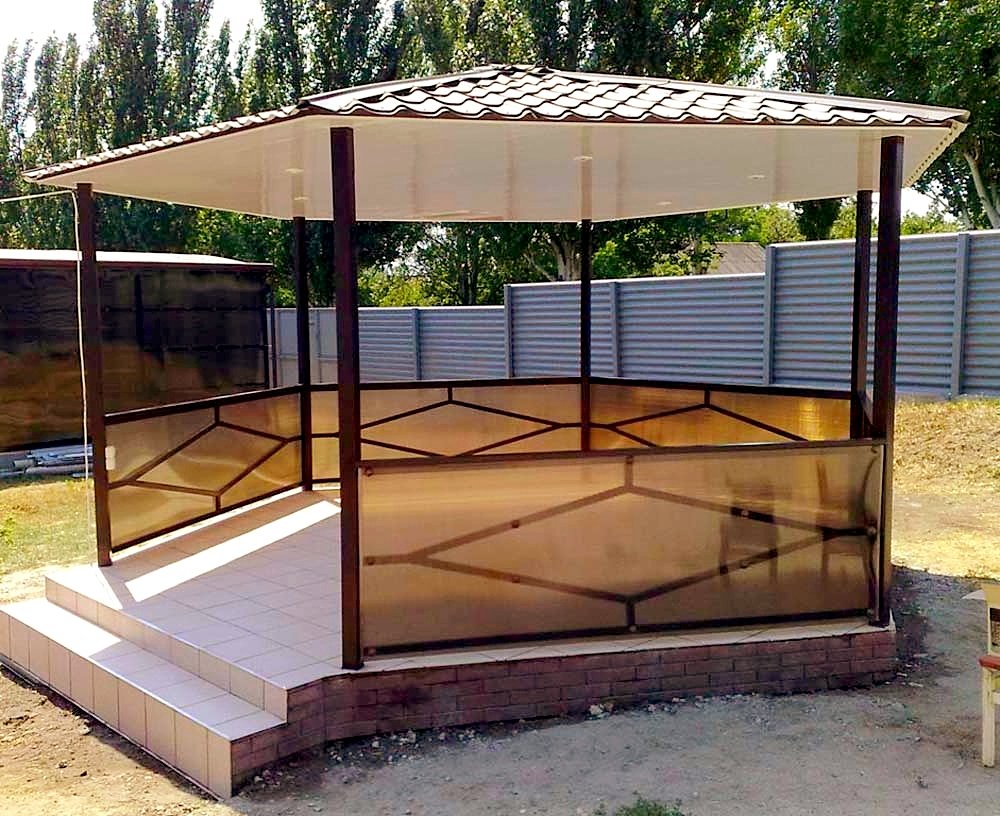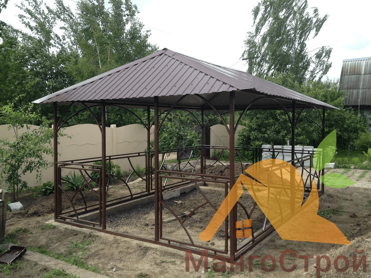 Беседка Садовая металлическая 286x268x249 см с крышей из поликарбоната