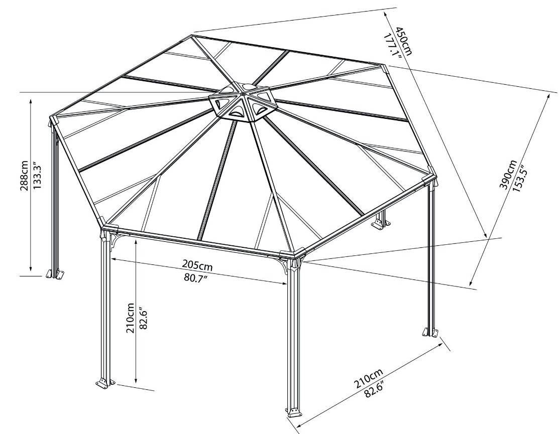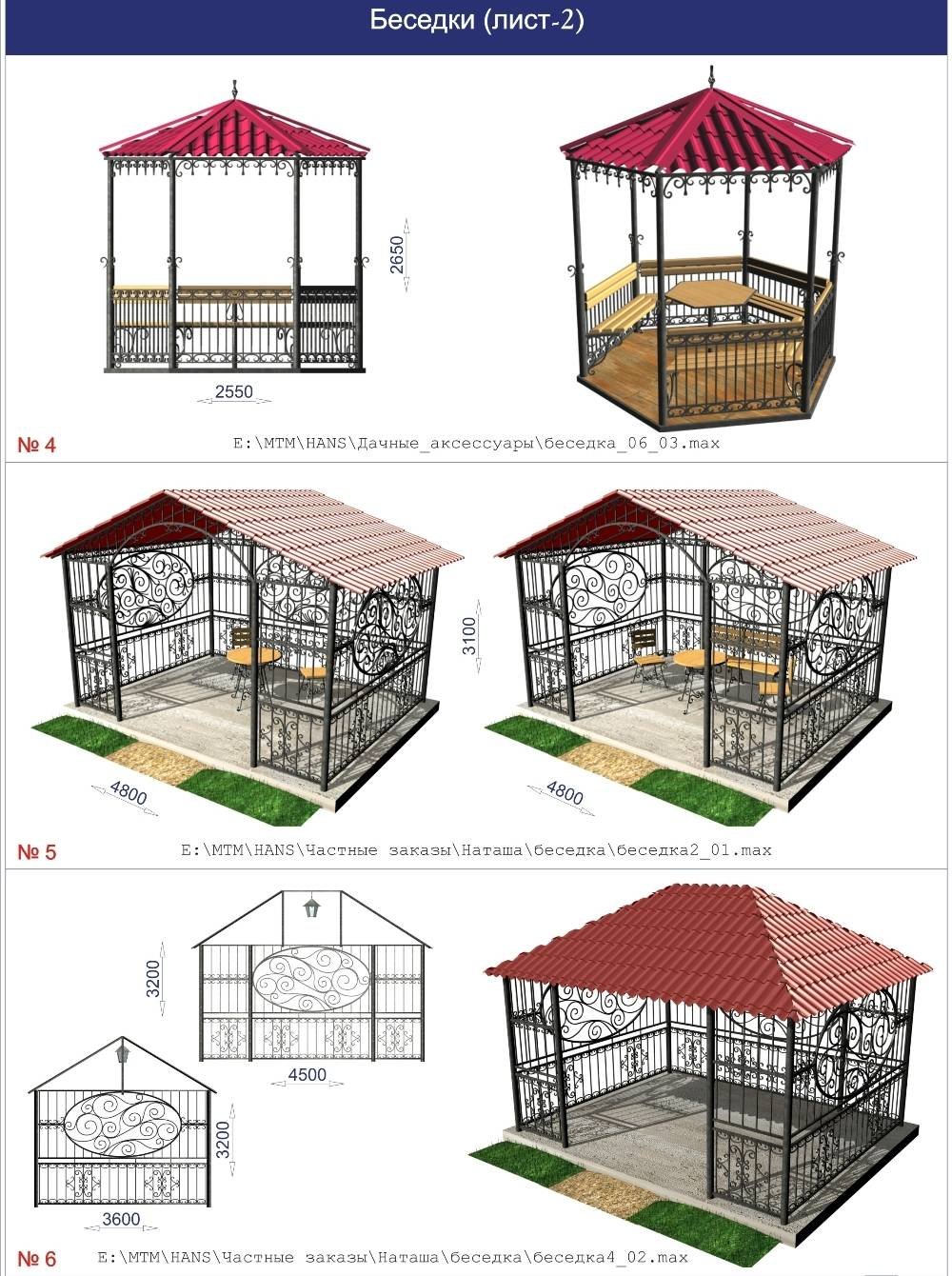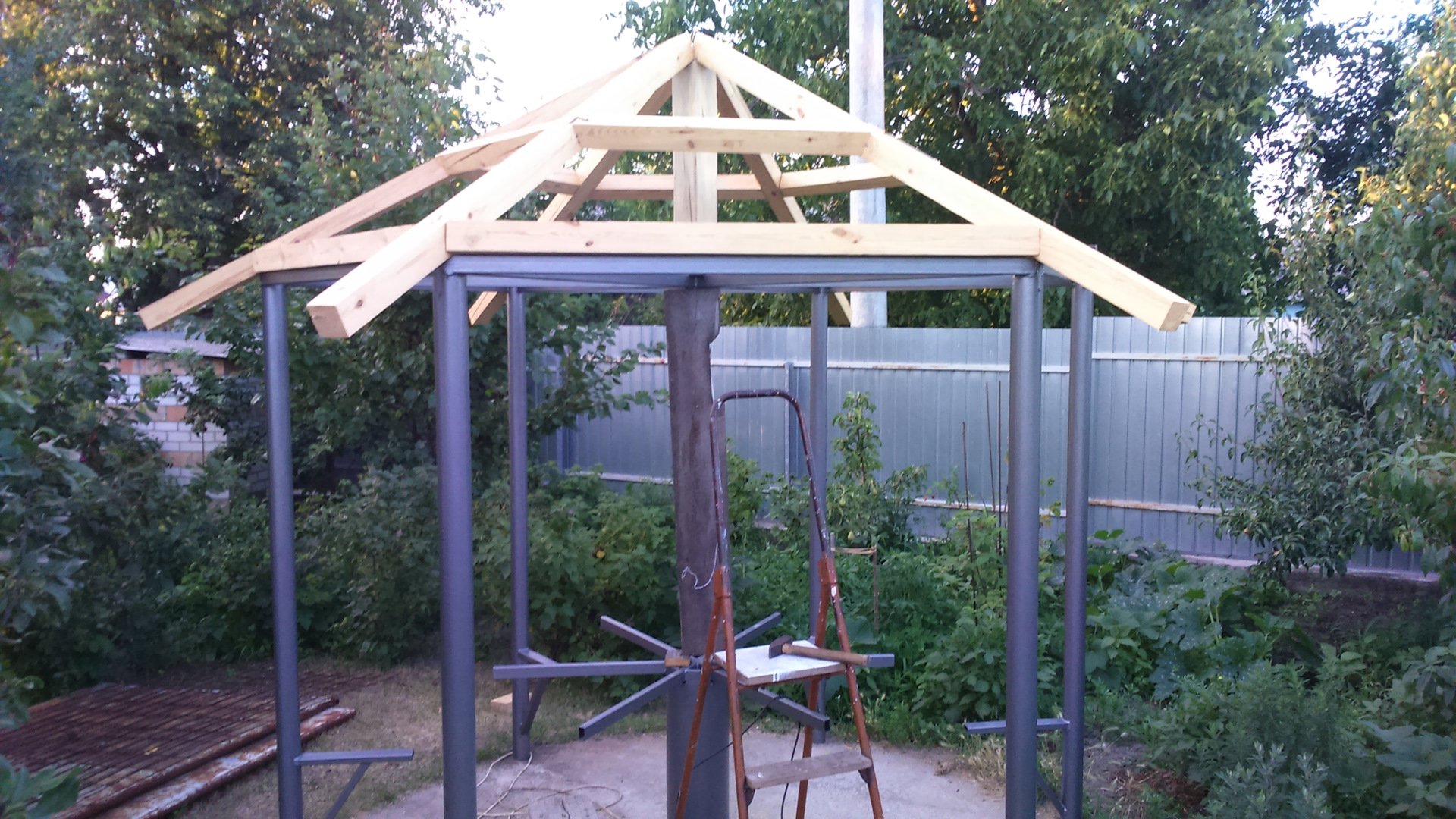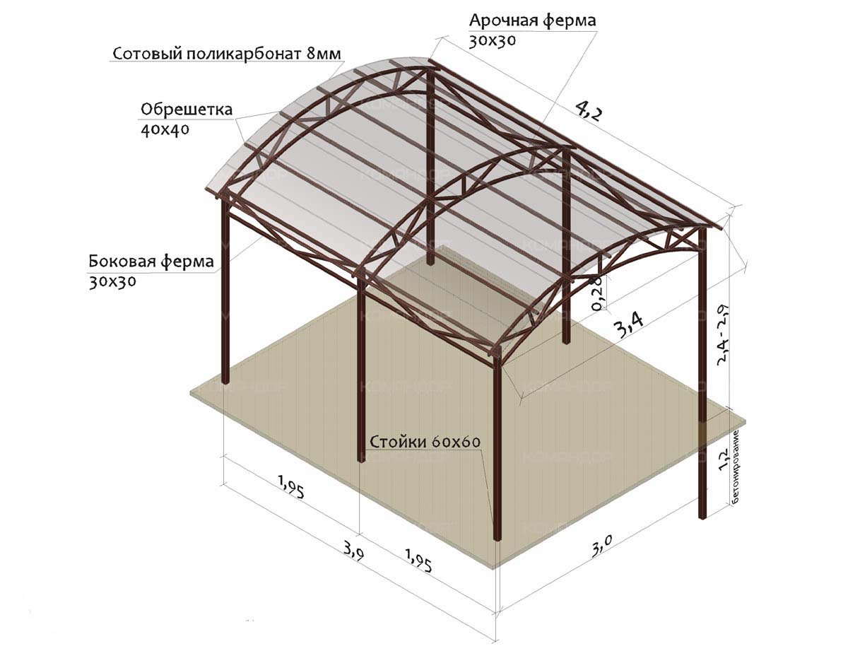 Беседка Садовая металлическая 286x268x249 см с крышей из поликарбоната