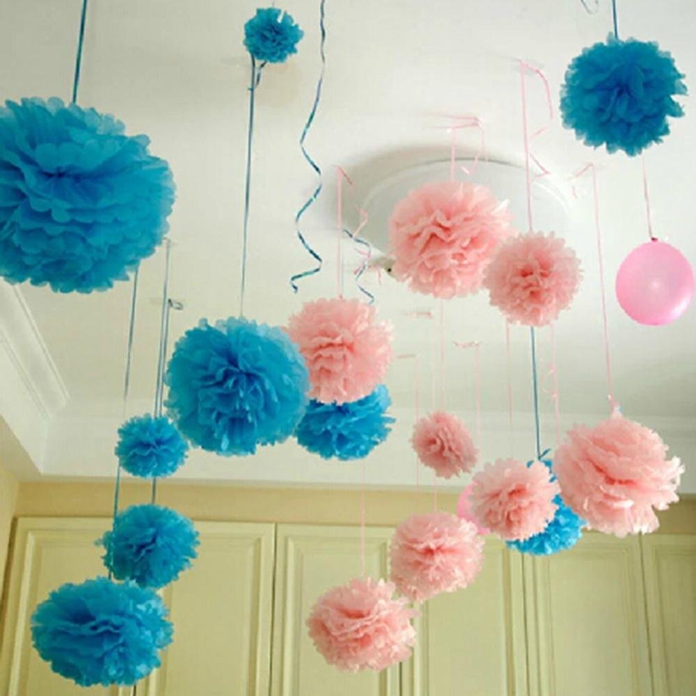 Украшение зала бумажными помпонами