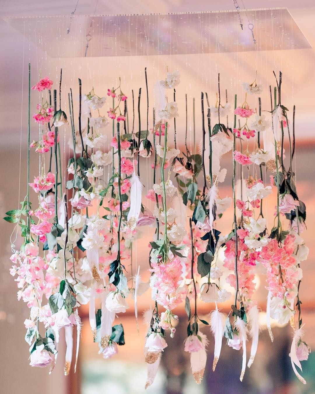 Украшение потолка искусственными цветами