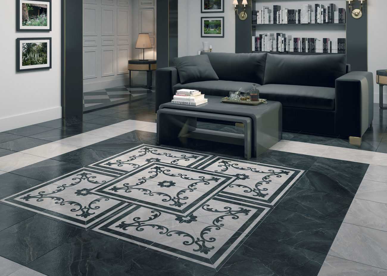 Керамогранит ковер в интерьере