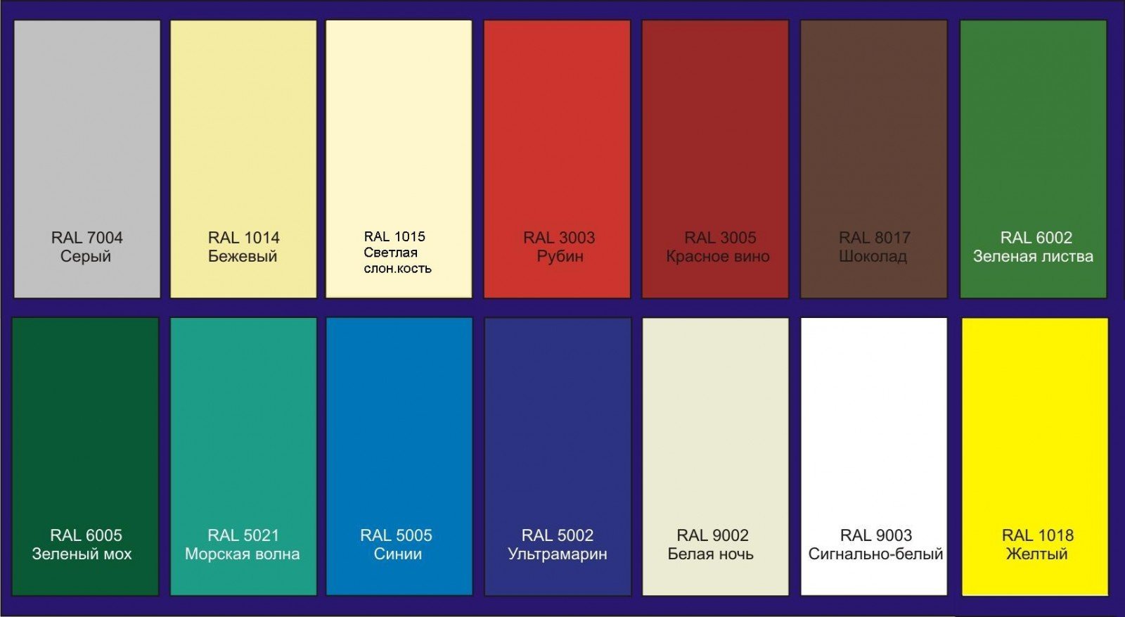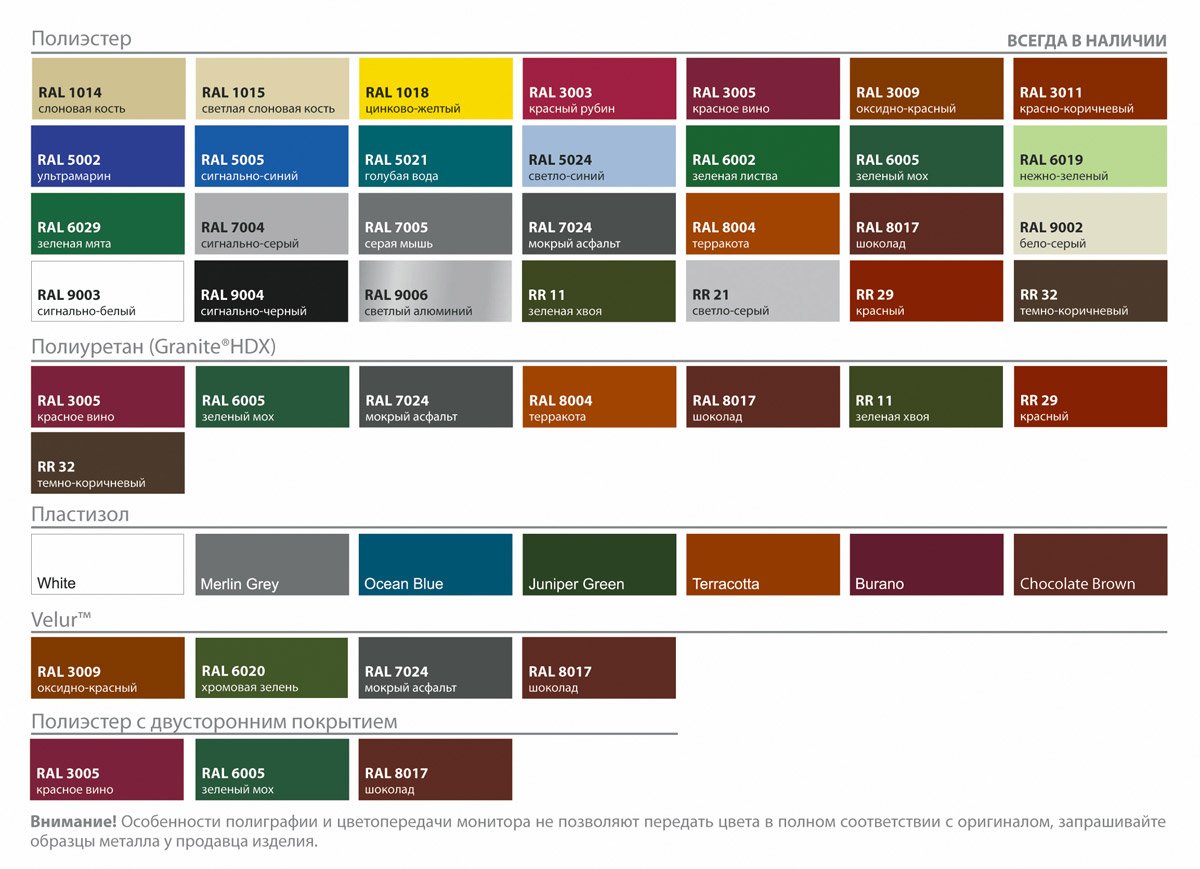 Цвета профлиста по рал