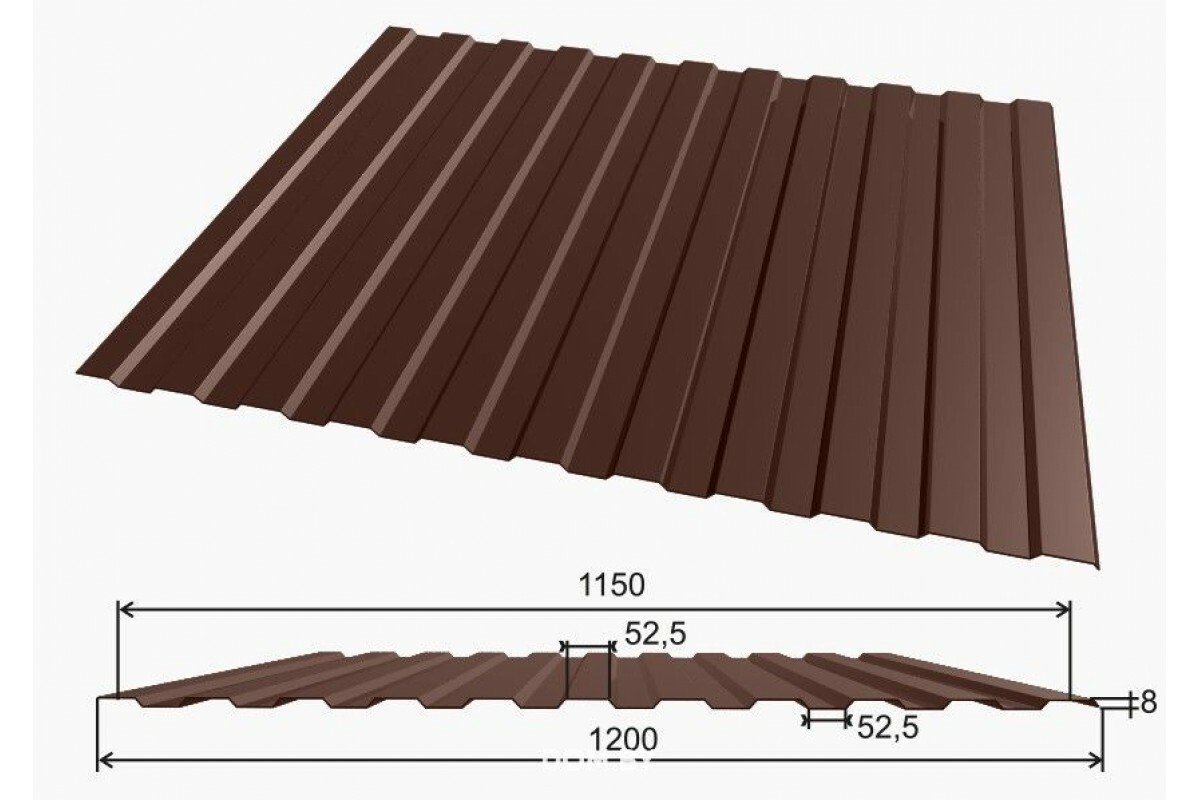 Профнастил ПС-8 глянец RAL 8019 Горький шоколад 0,45*1210*2000мм