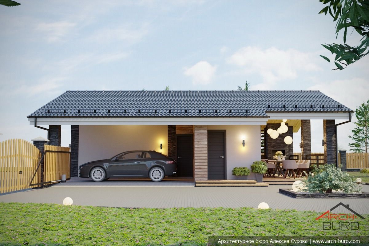 Проекты одноэтажных домов с навесом