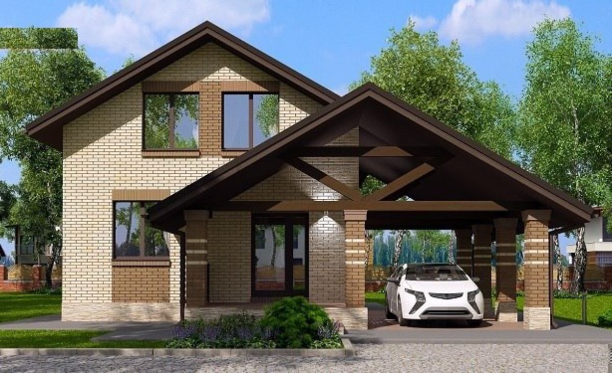 Дом с мансардой и навесом для машины