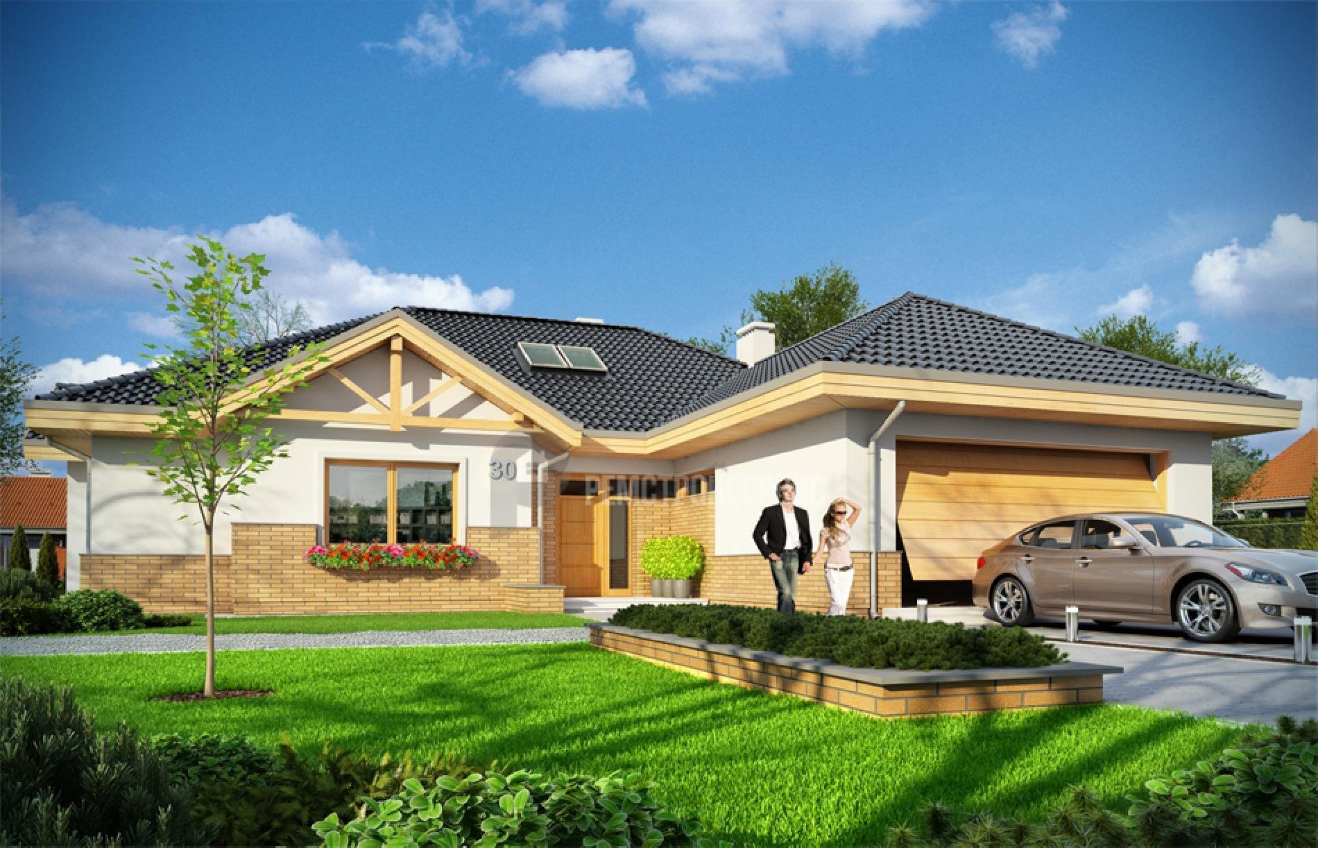 Одноэтажный дом с гаражом на 2 машины