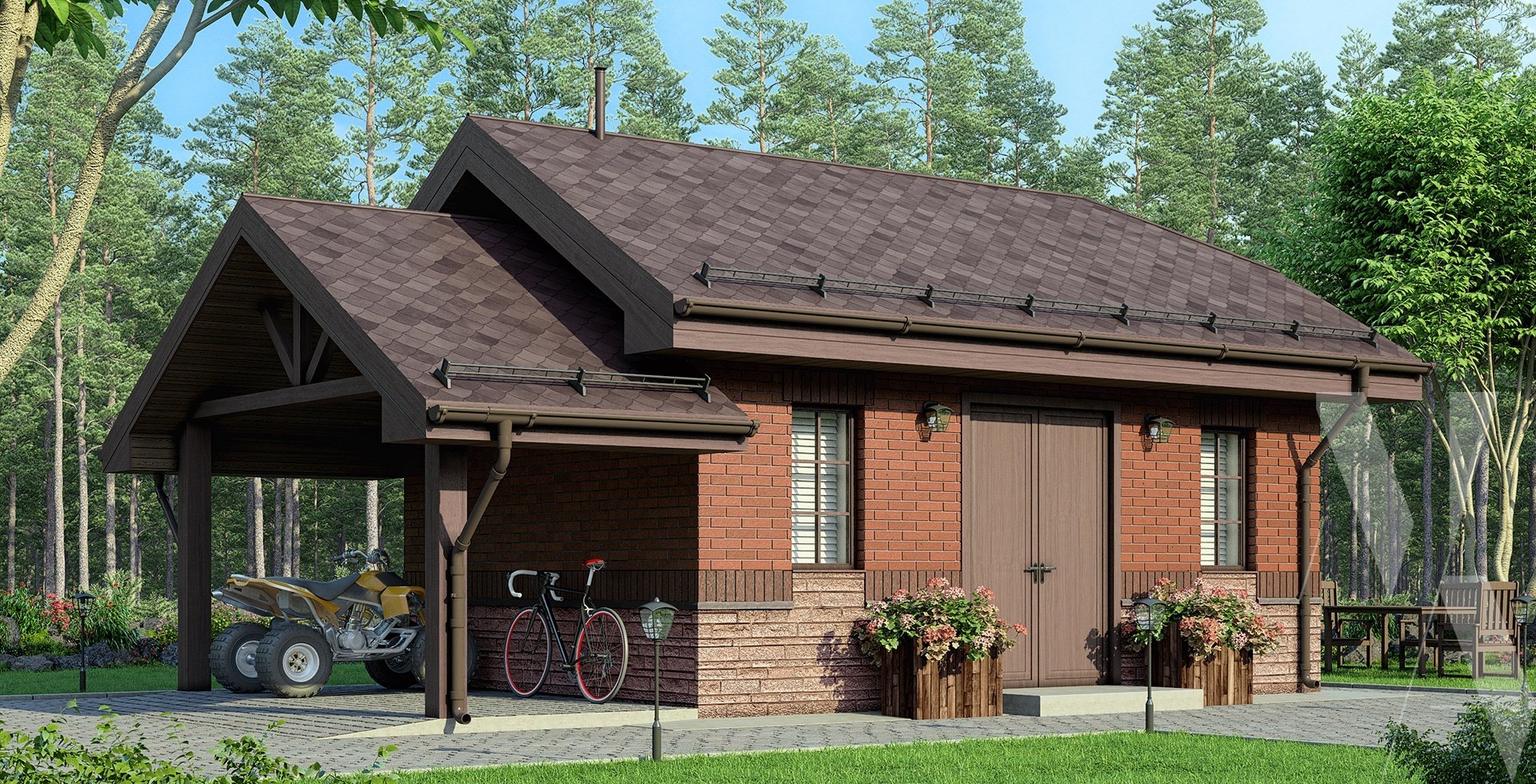 Гараж с верандой под одной крышей