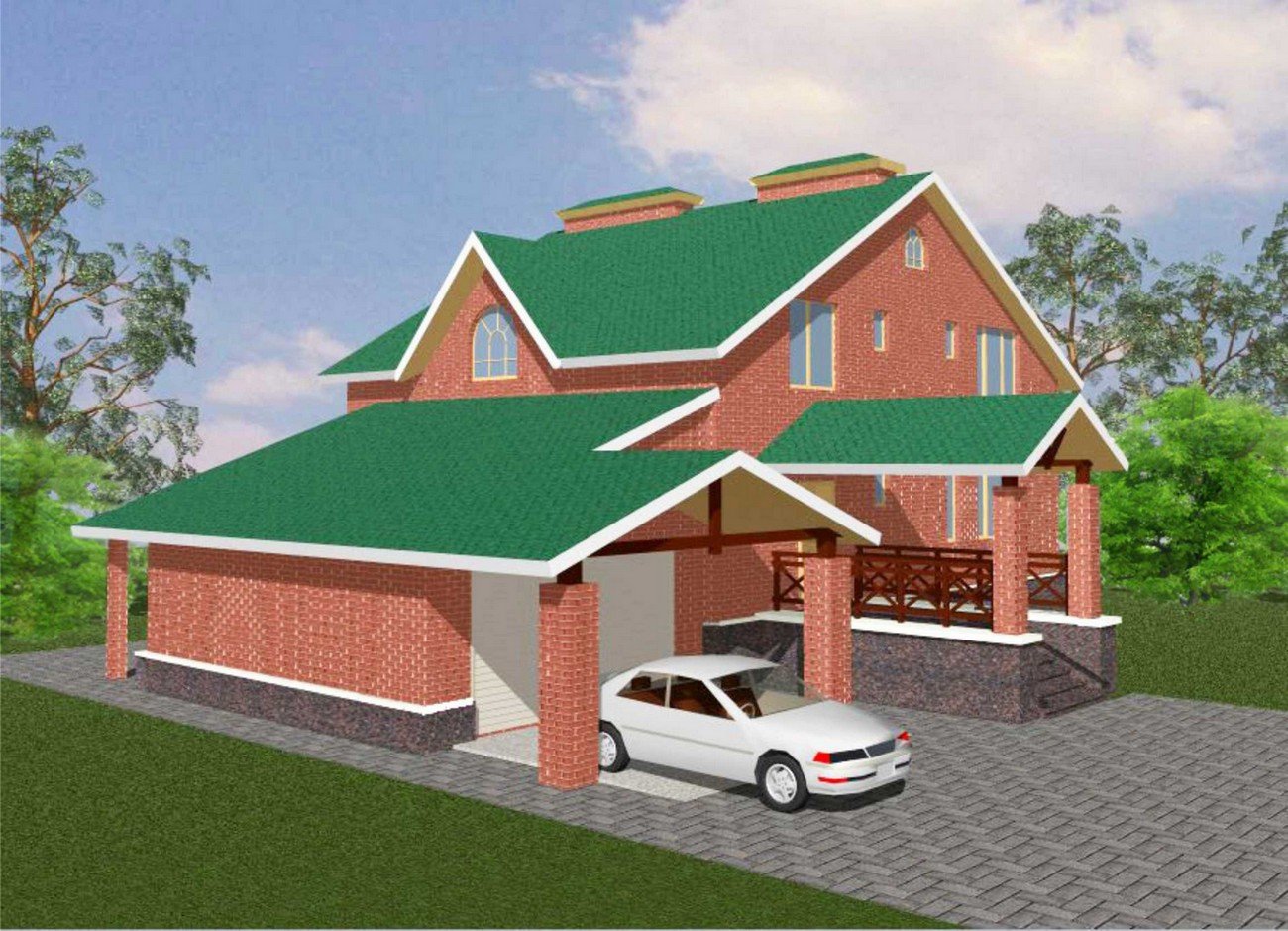 Дом с навесом для машины и террасой