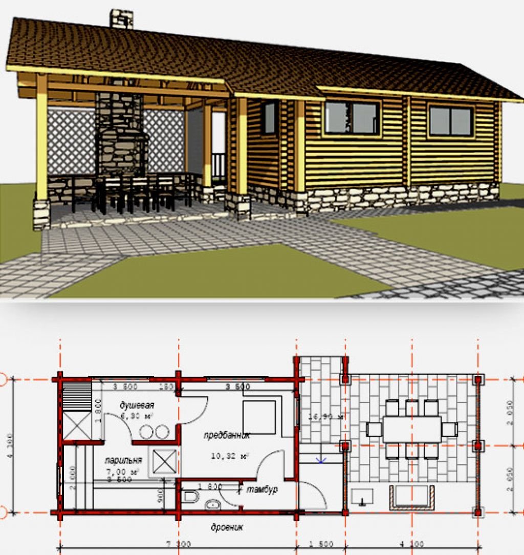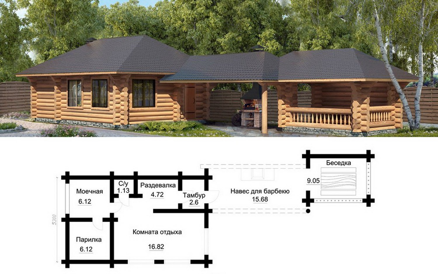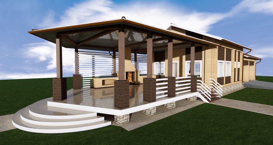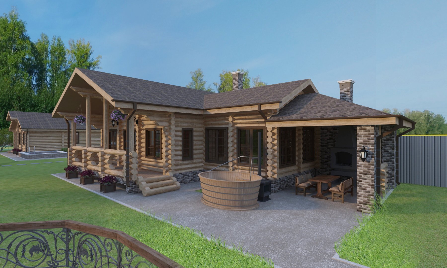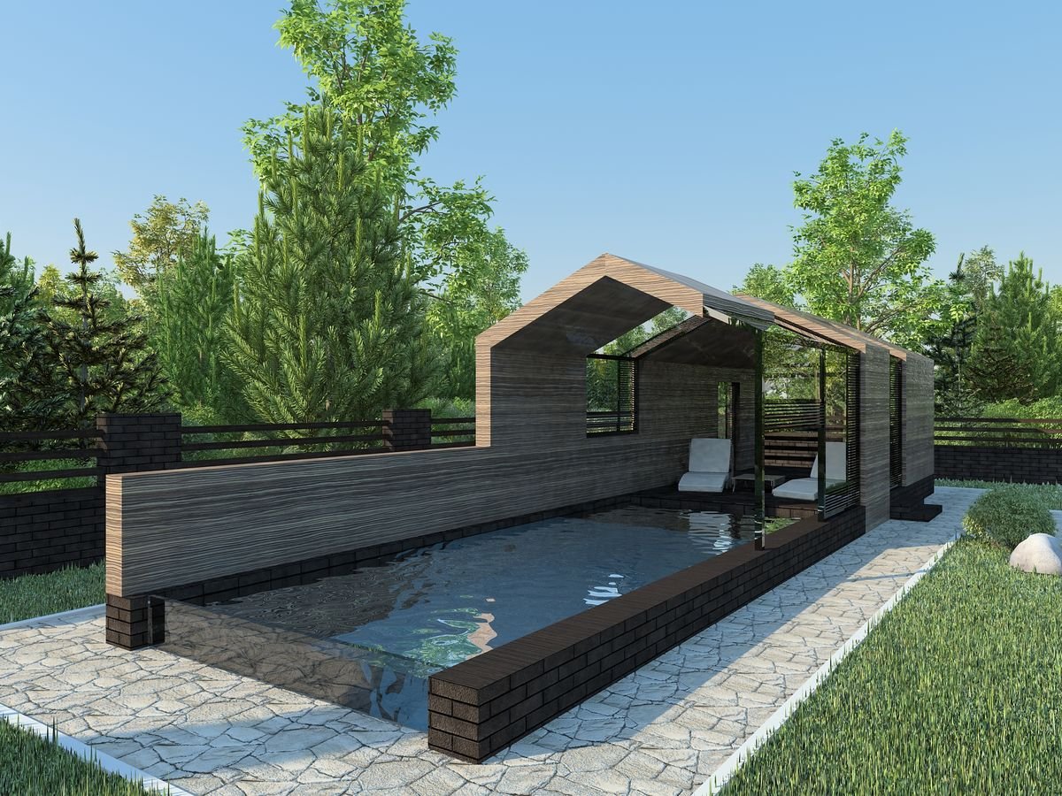 Баня с бассейном и беседкой и мангальной зоной под одной крышей