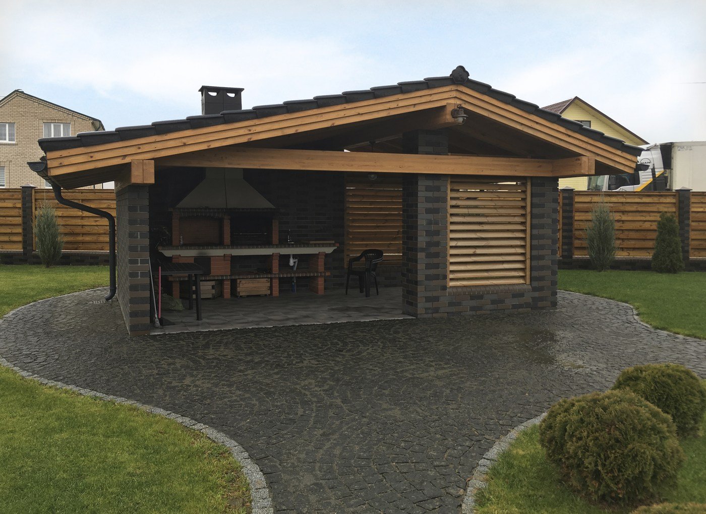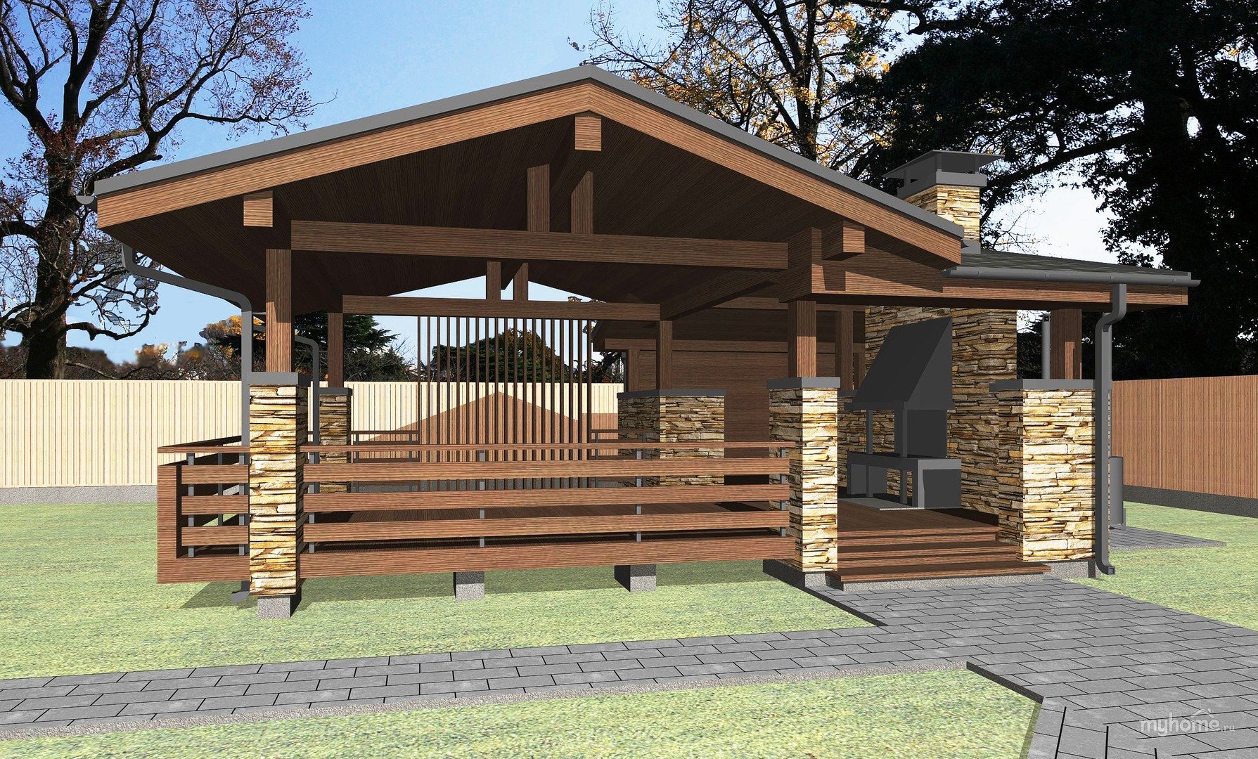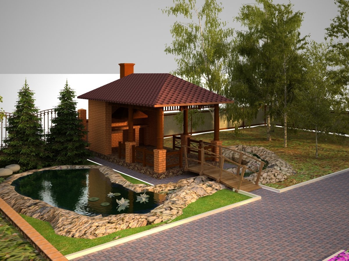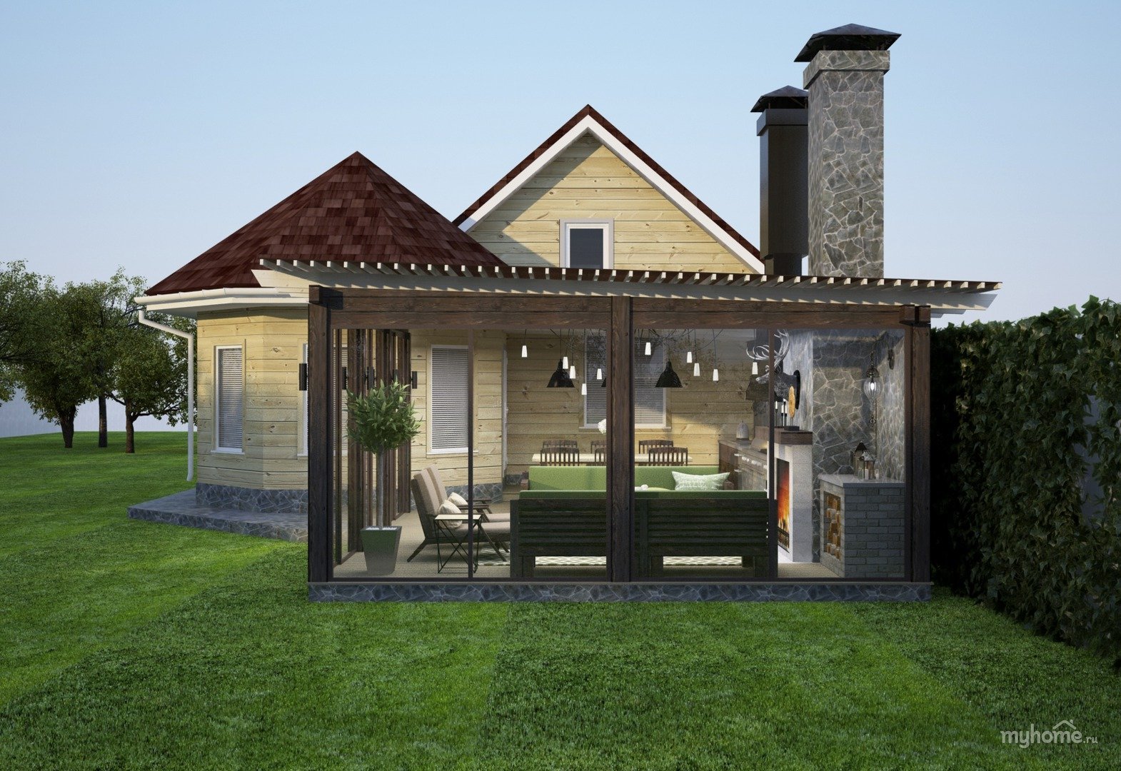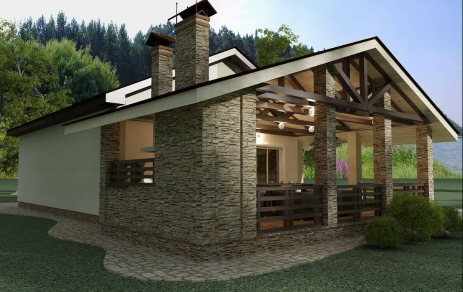 Баня с бассейном и беседкой и мангальной зоной под одной крышей
