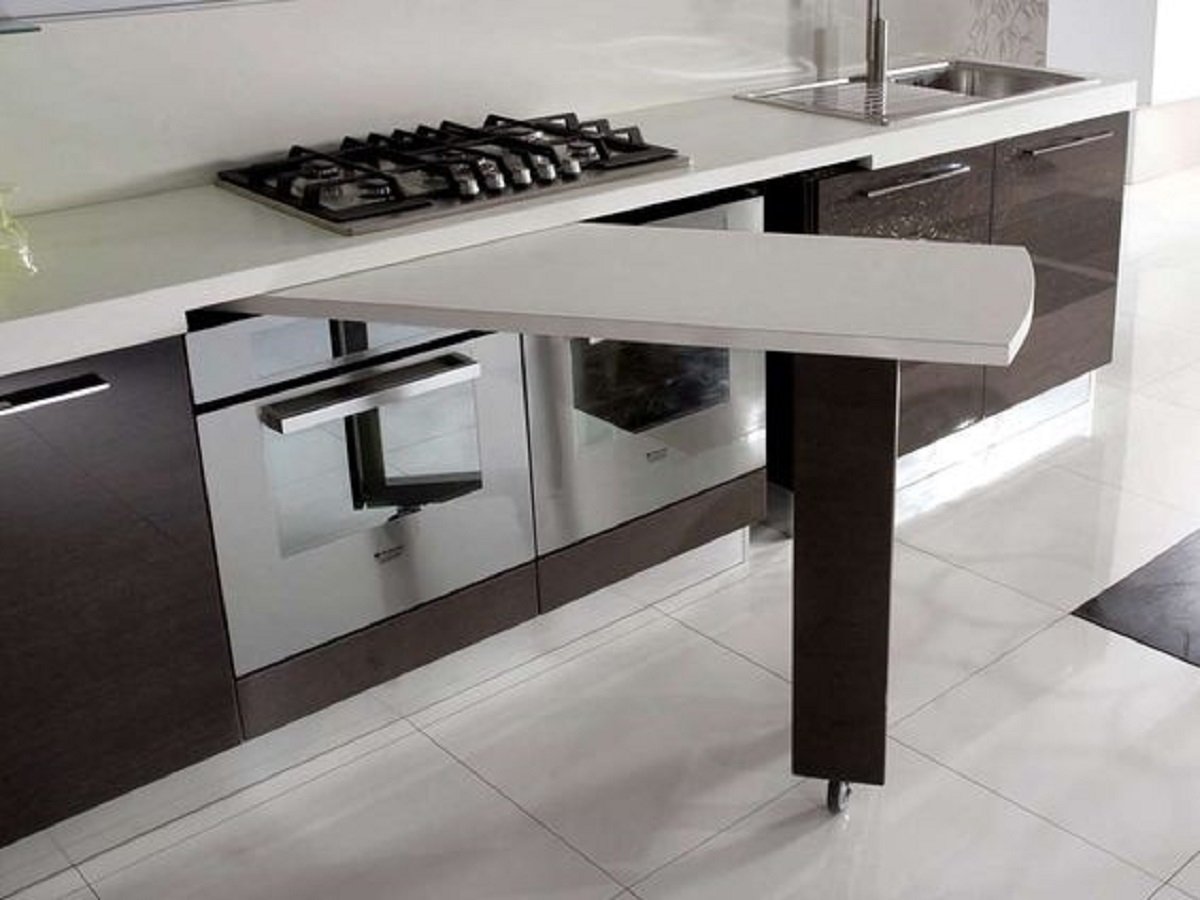 Выдвижная столешница на кухне