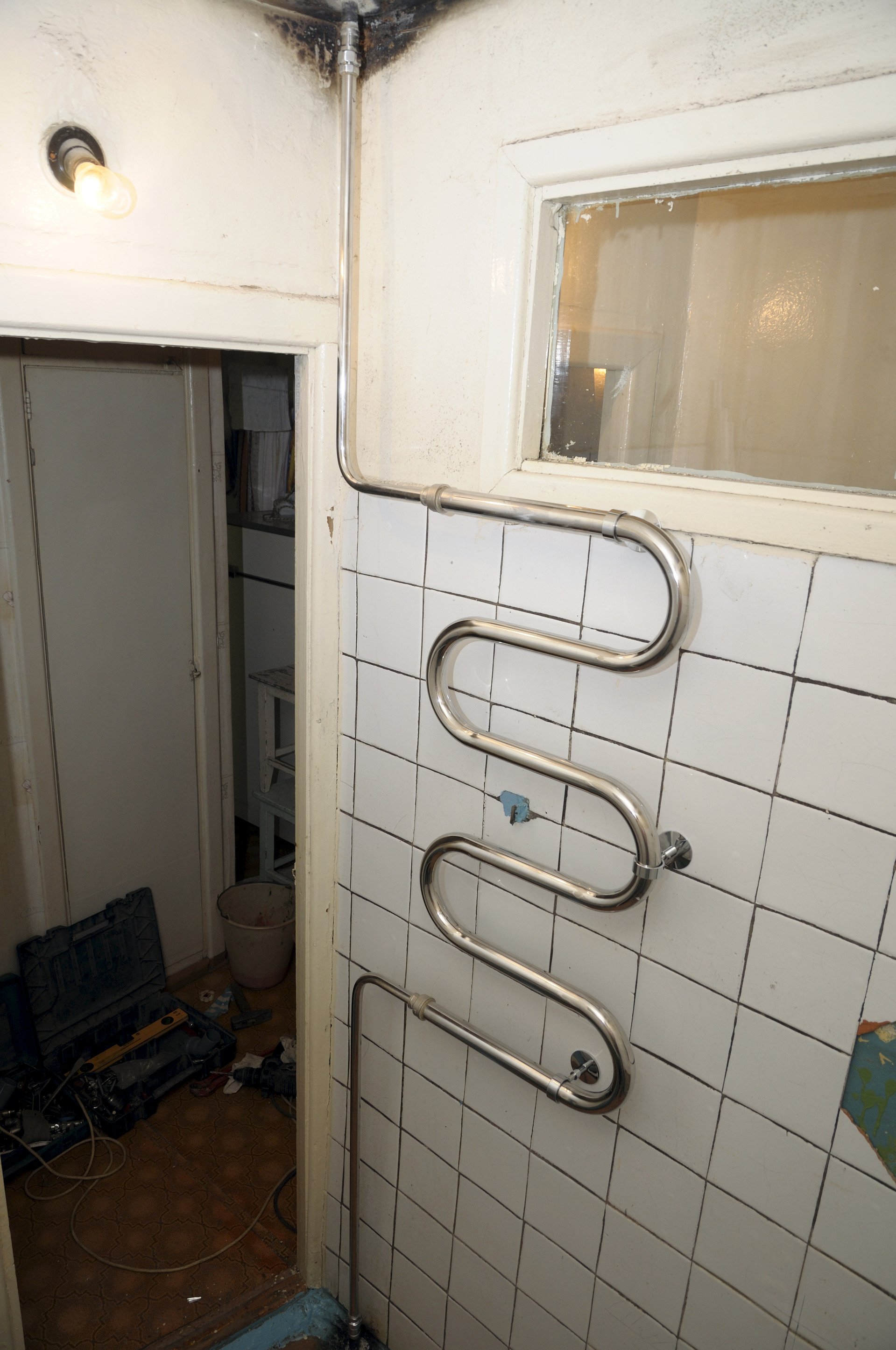 Полотенцесушитель сбоку от двери электрический у двери выпирает