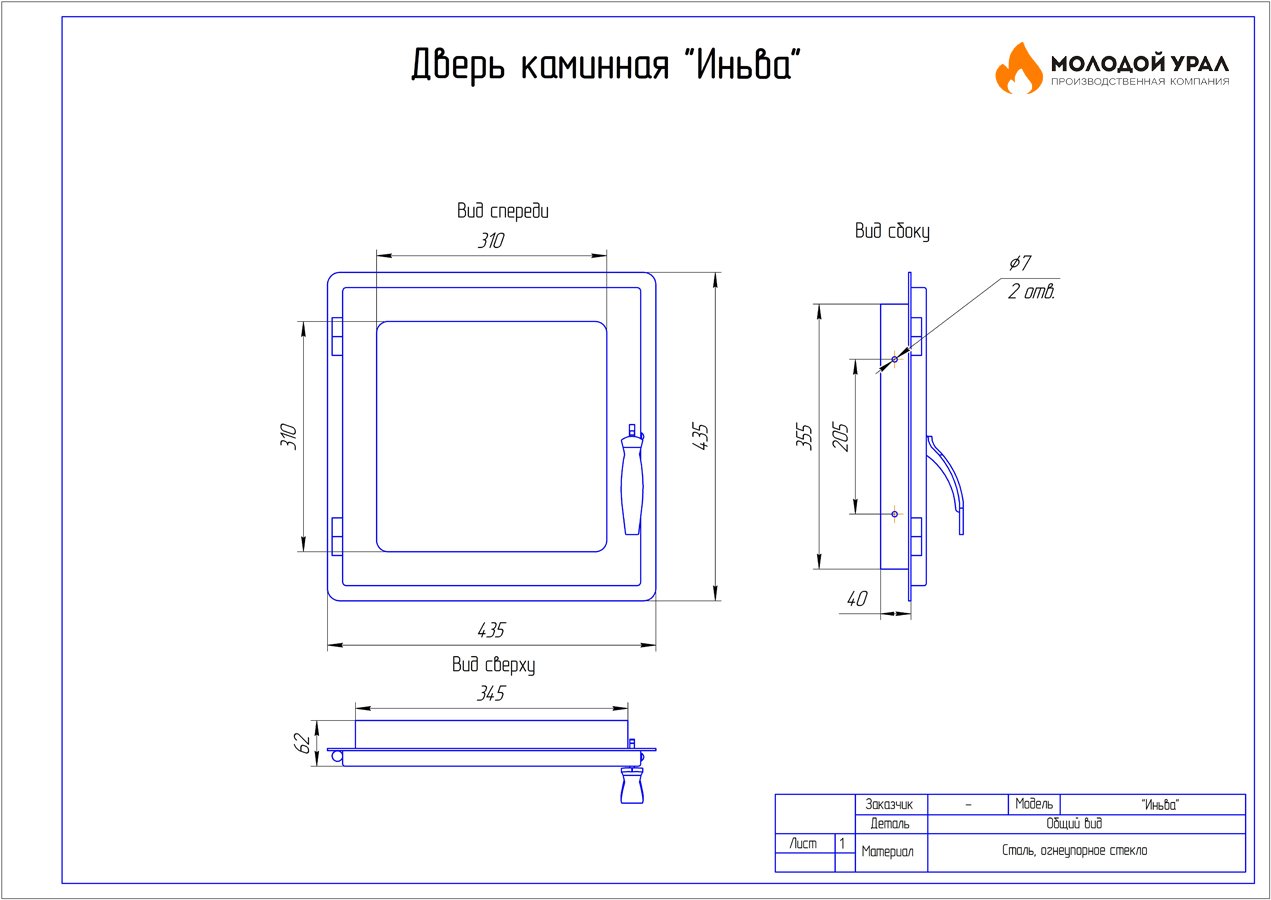 Чертеж стеклянной дверцы для печи Гефест
