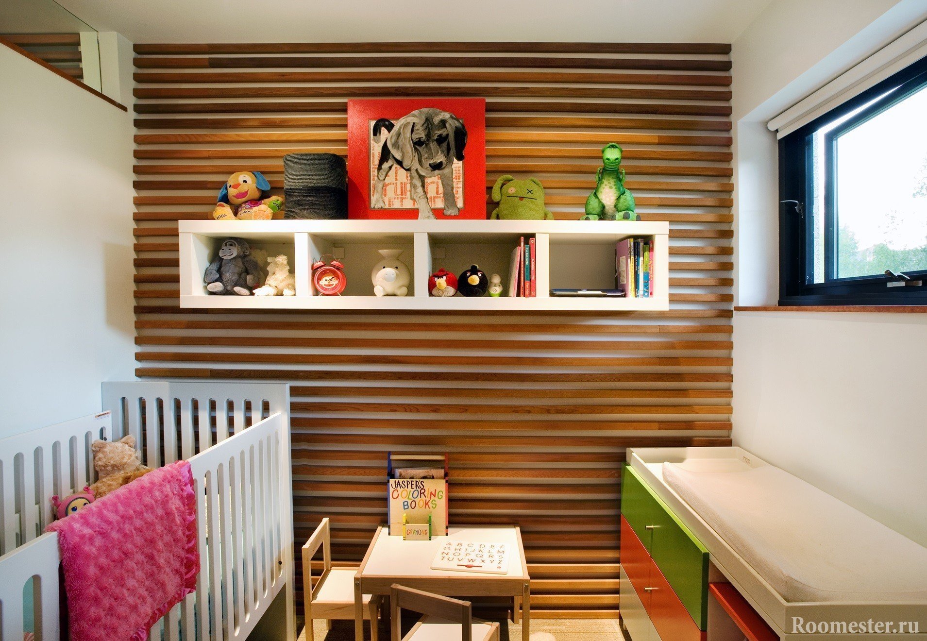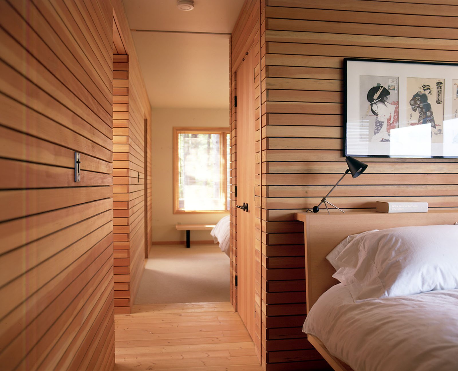 Деревянные рейки в спальне