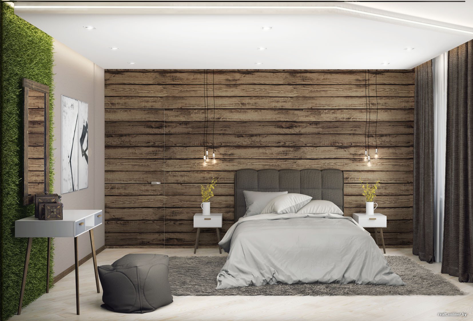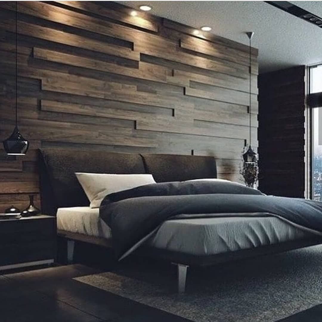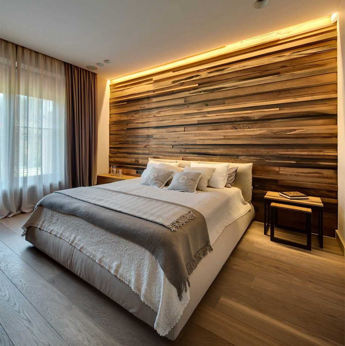 Акцентная стена в спальне из дерева