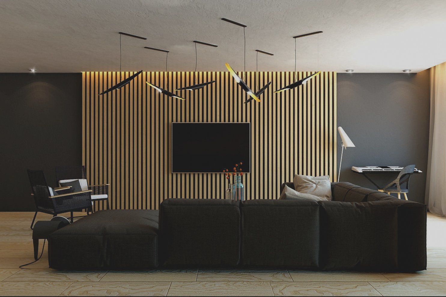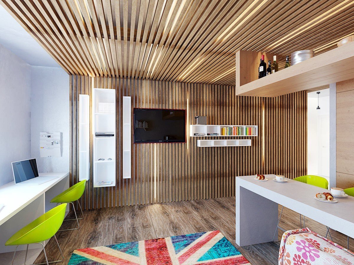 Деревянные рейки в интерьере
