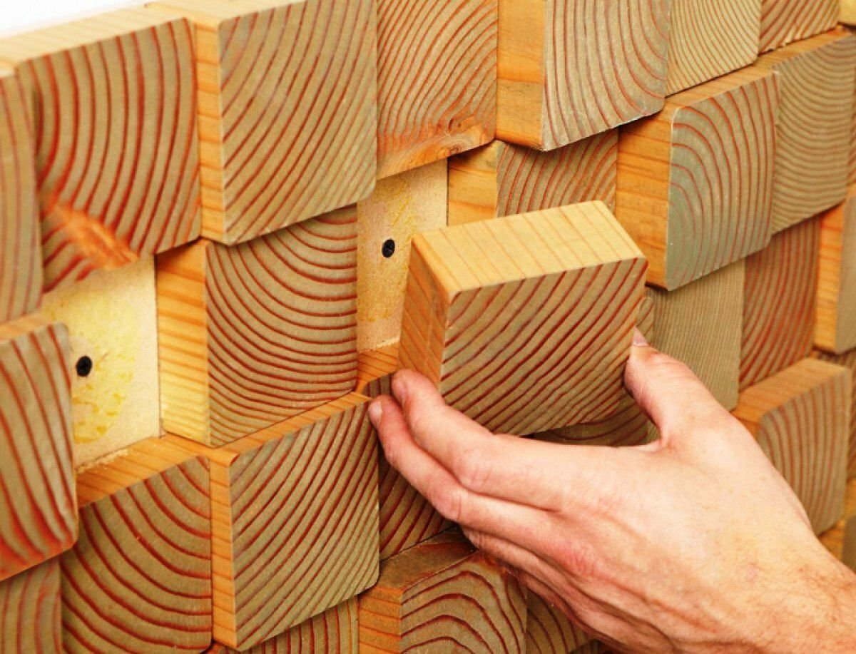 Стена из деревянных кубиков