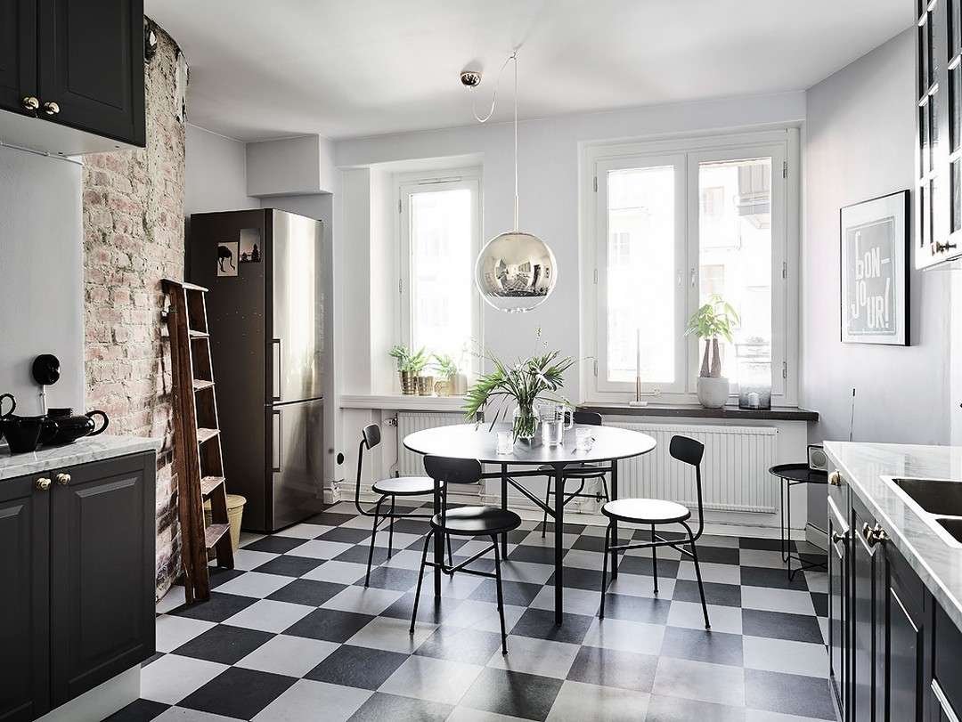 Кухня с мраморным полом