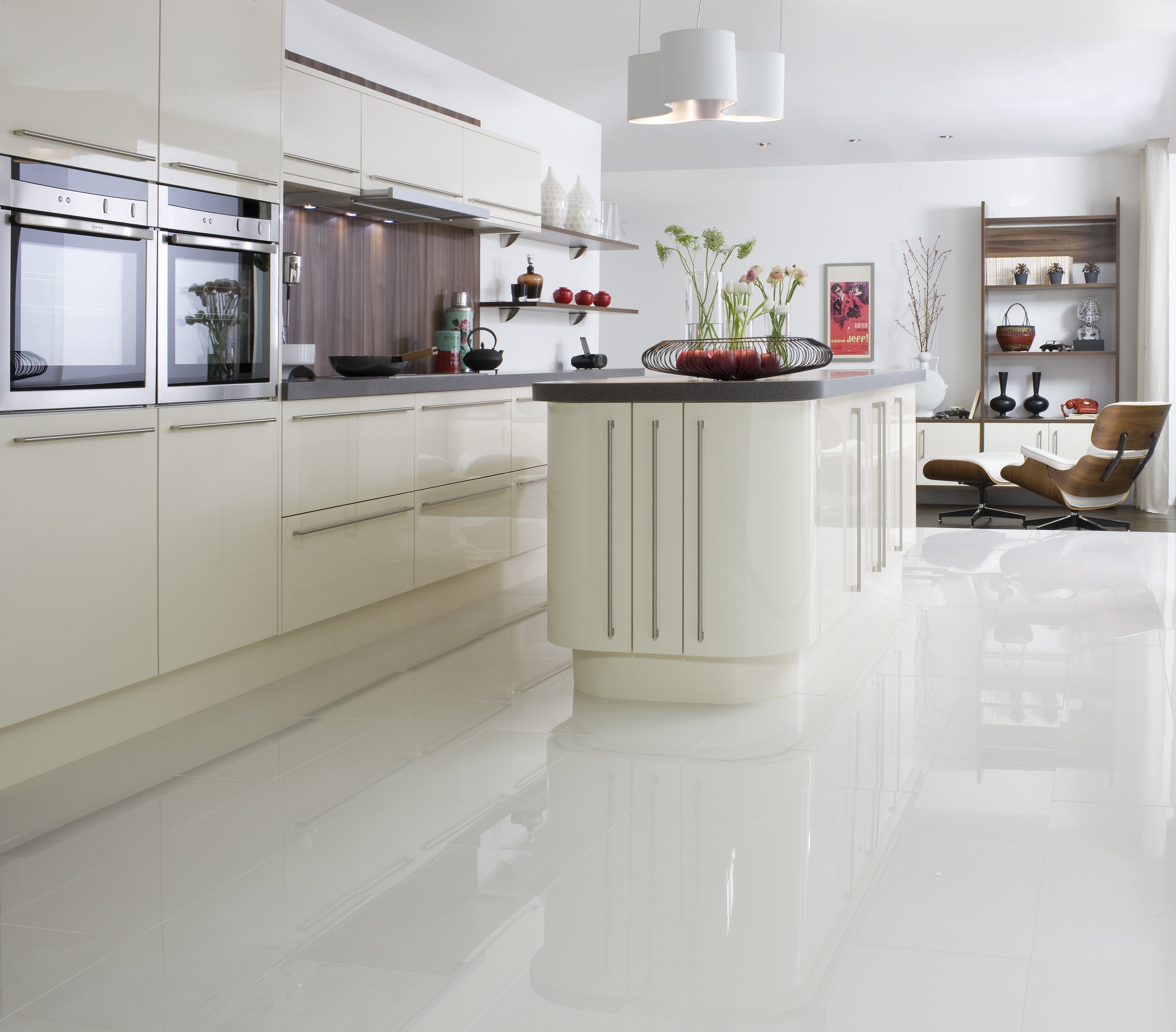 Плитка глянцевая для белой кухни напольная