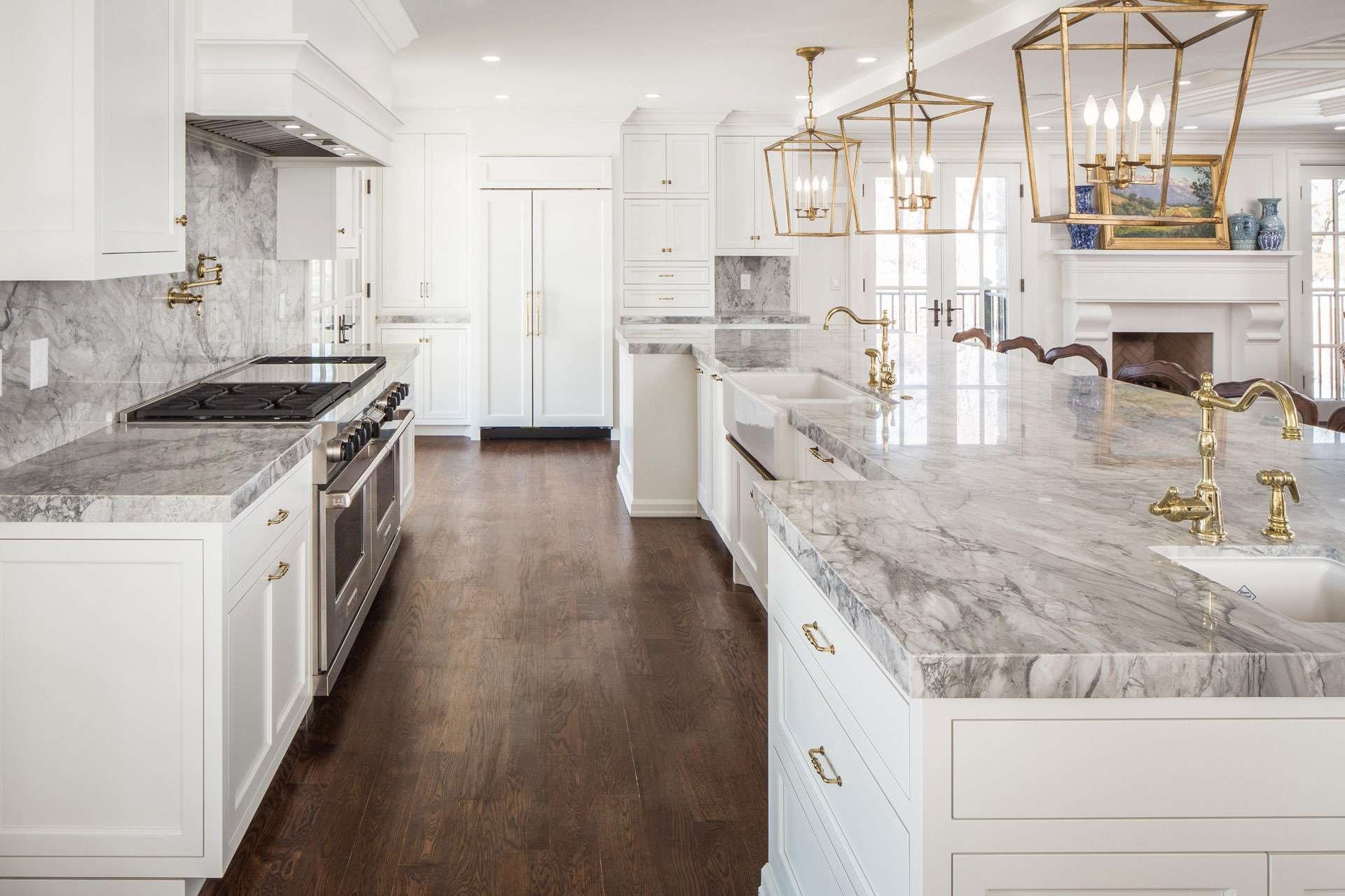 Белая кухня в современном стиле с мрамором