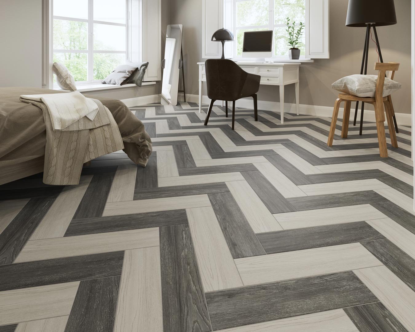 Керамогранит под паркет французской елочкой