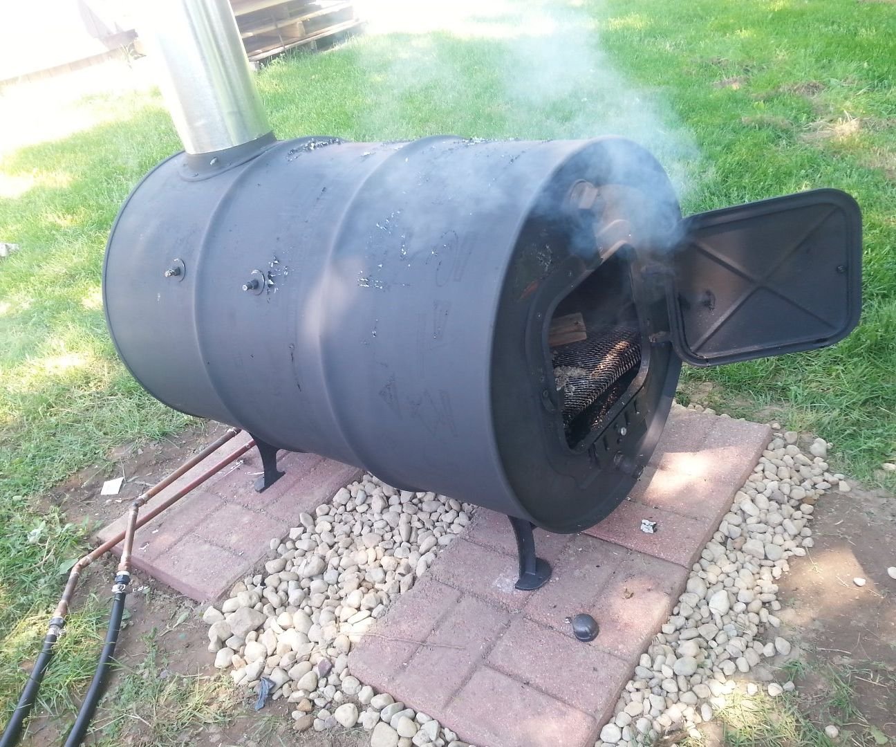 Печь из бочки для подогрева воды в бассейне