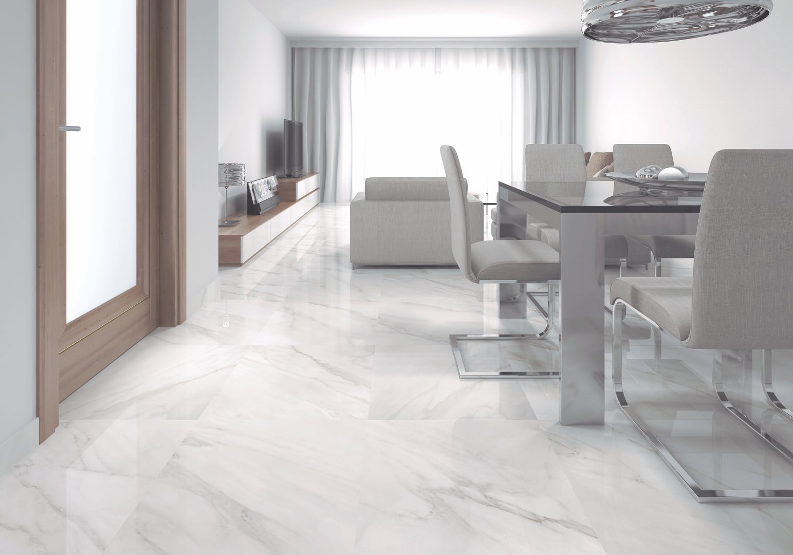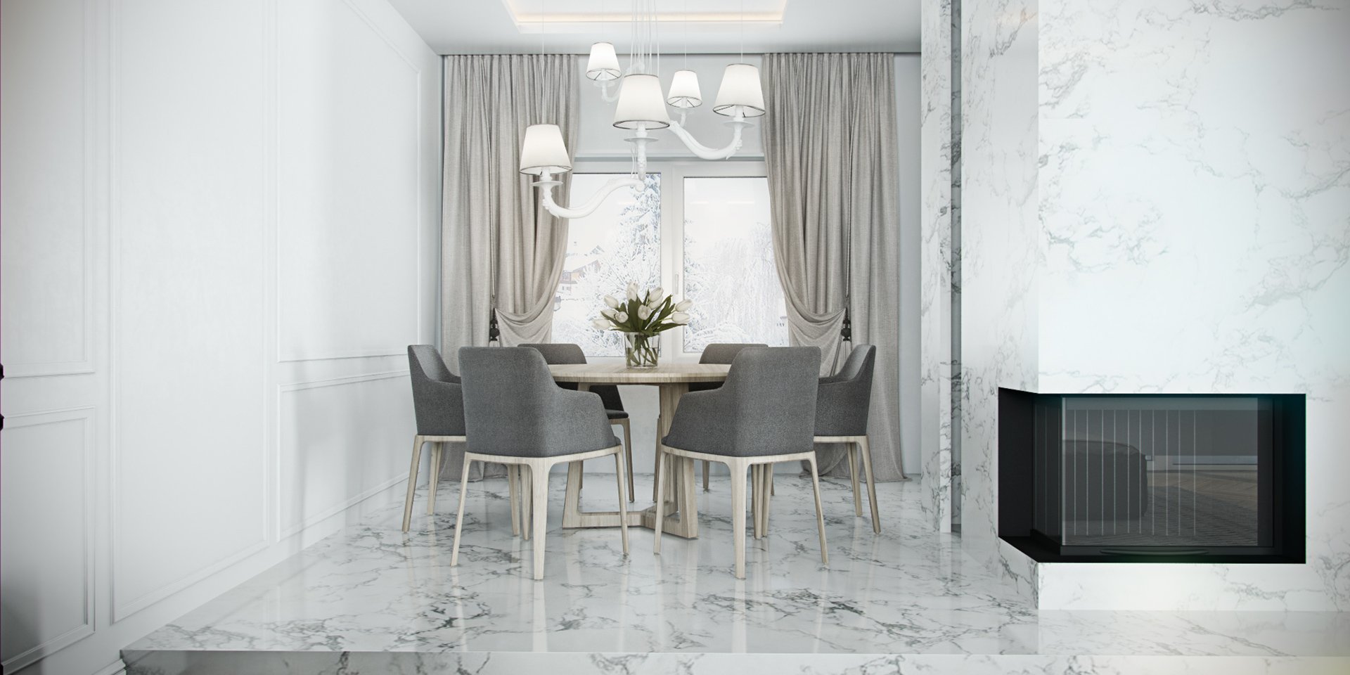Гостиная в белом мрамор в интерьере