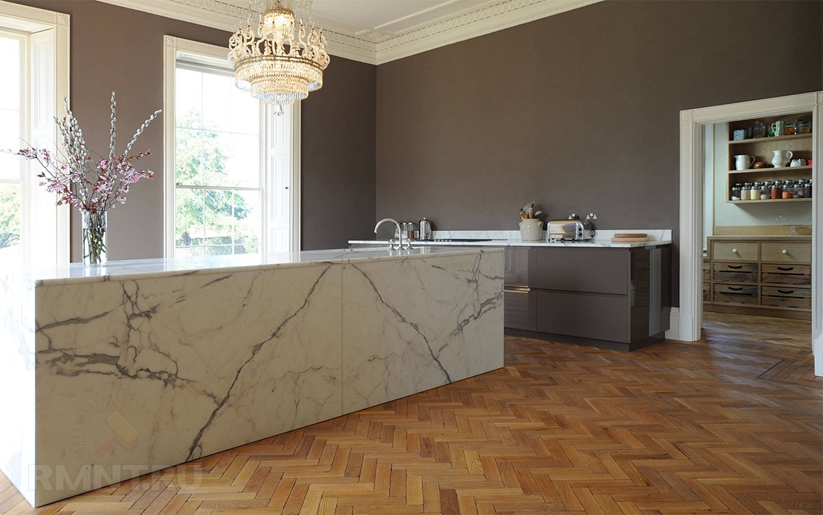 Кухня белый мрамор