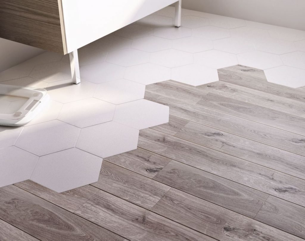 Сочетание плитки и паркета