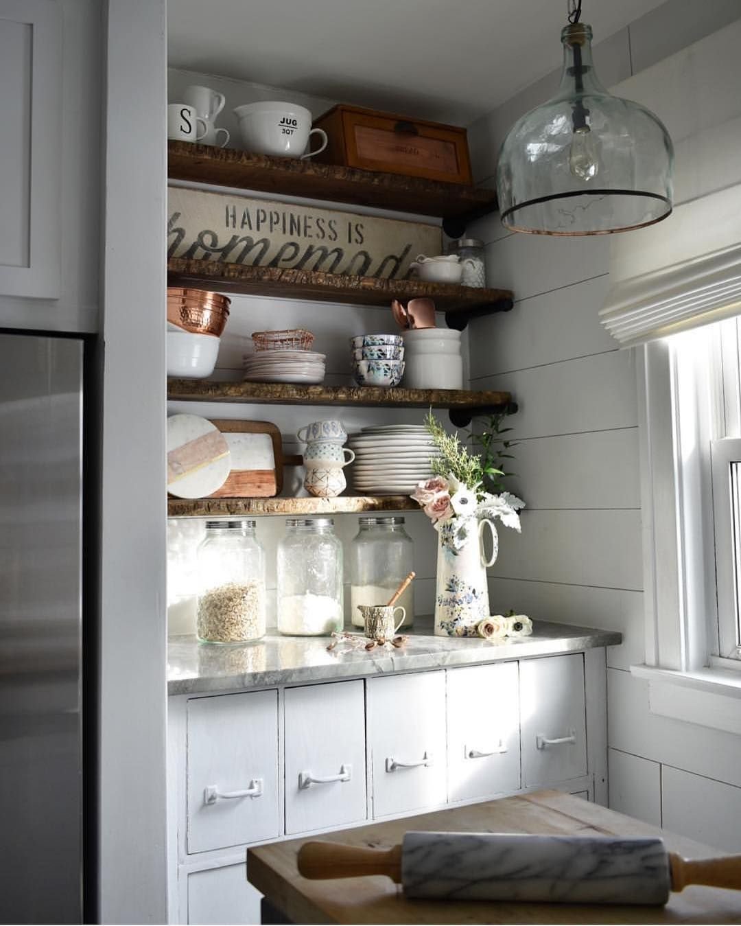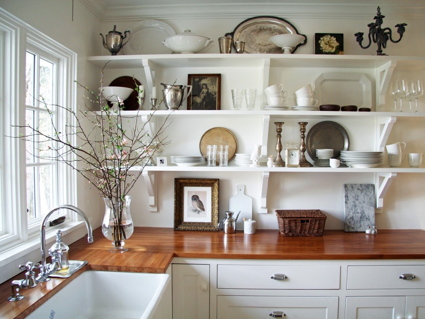Открытые полочки на кухне