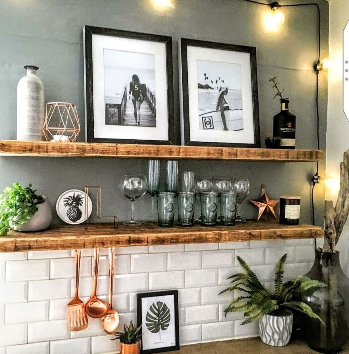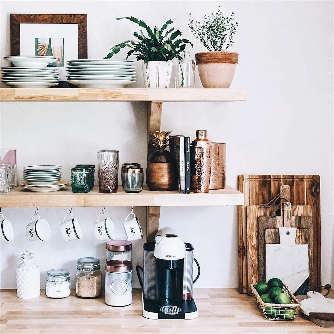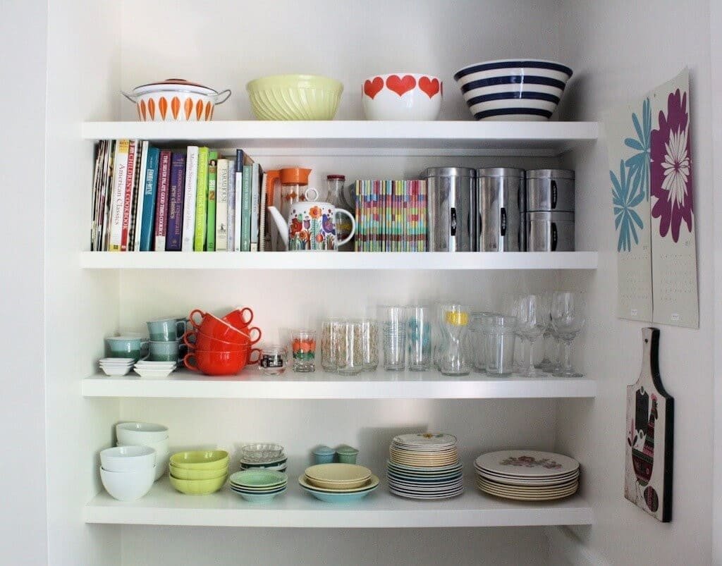 Декор открытых полок на кухне