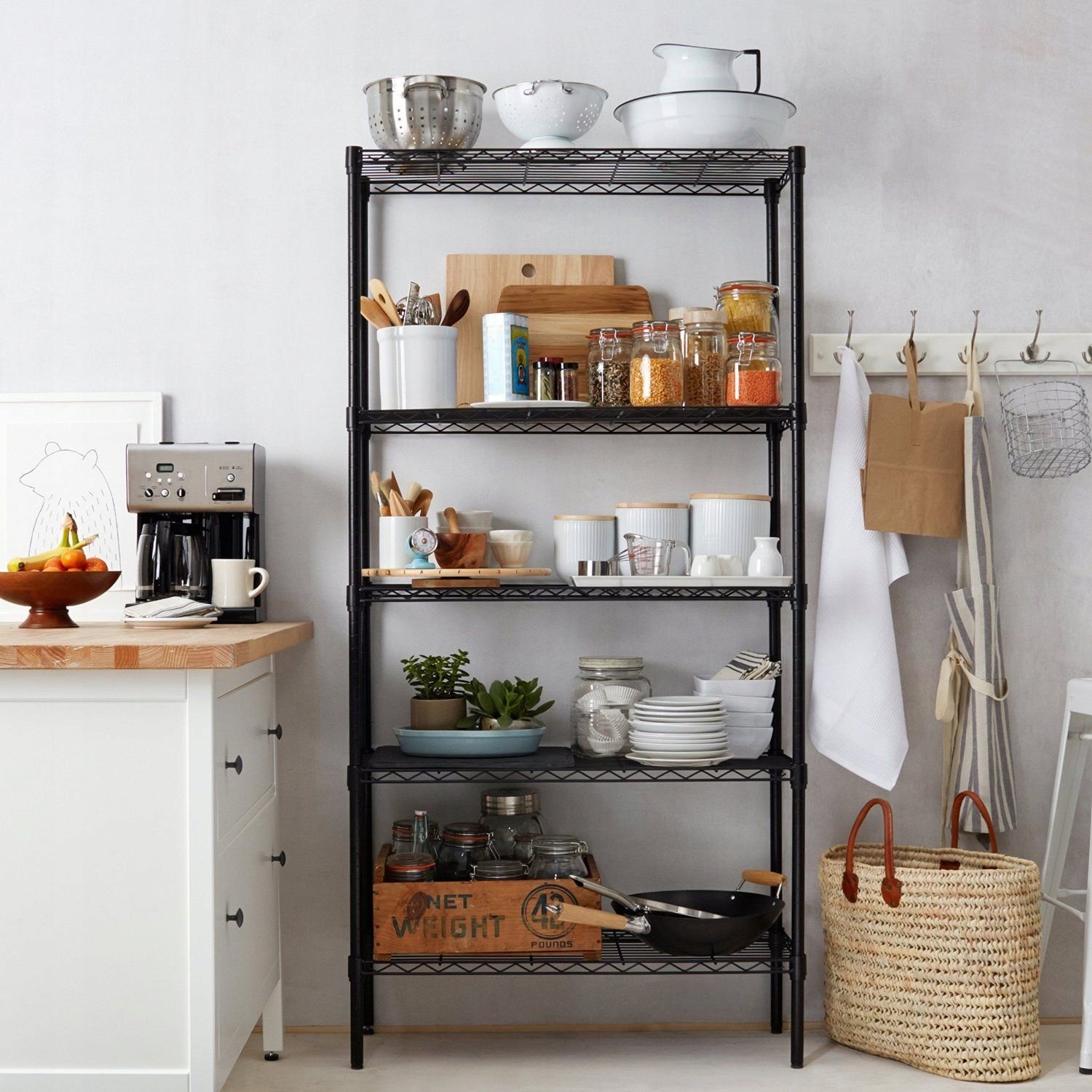 Открытый стеллаж на кухне