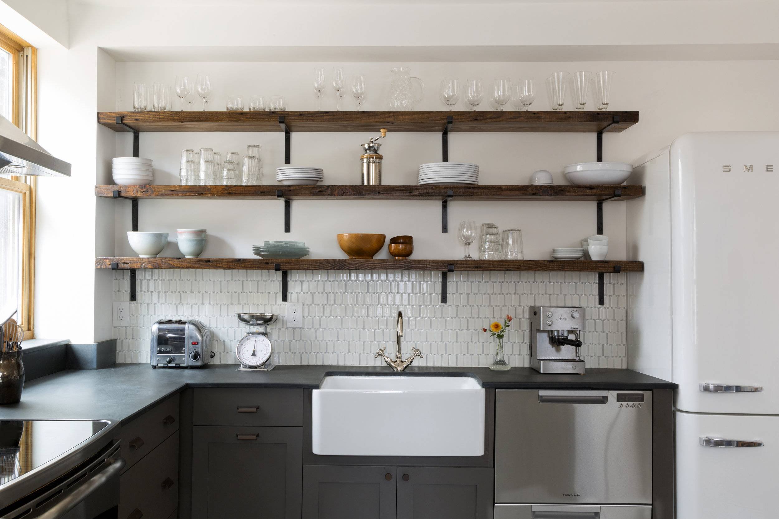 Открытые полки на кухне
