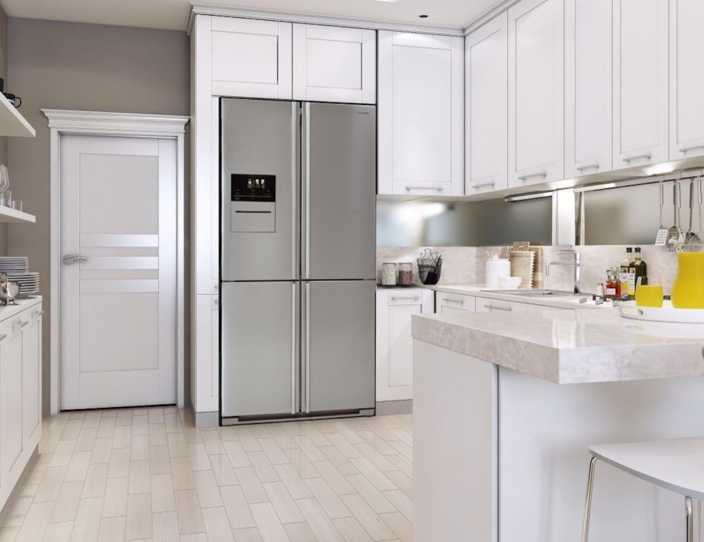 Кухня с двухстворчатым холодильником