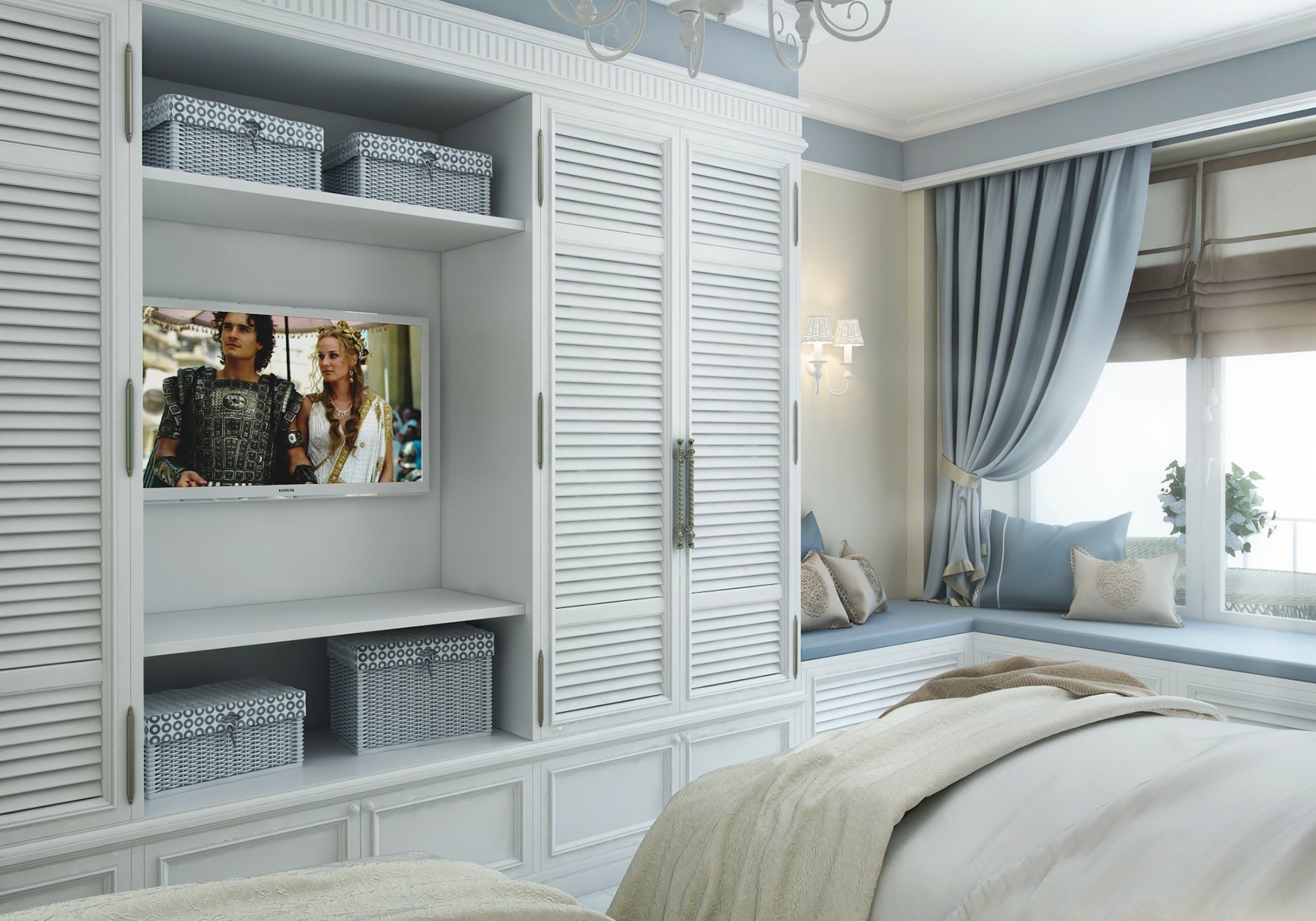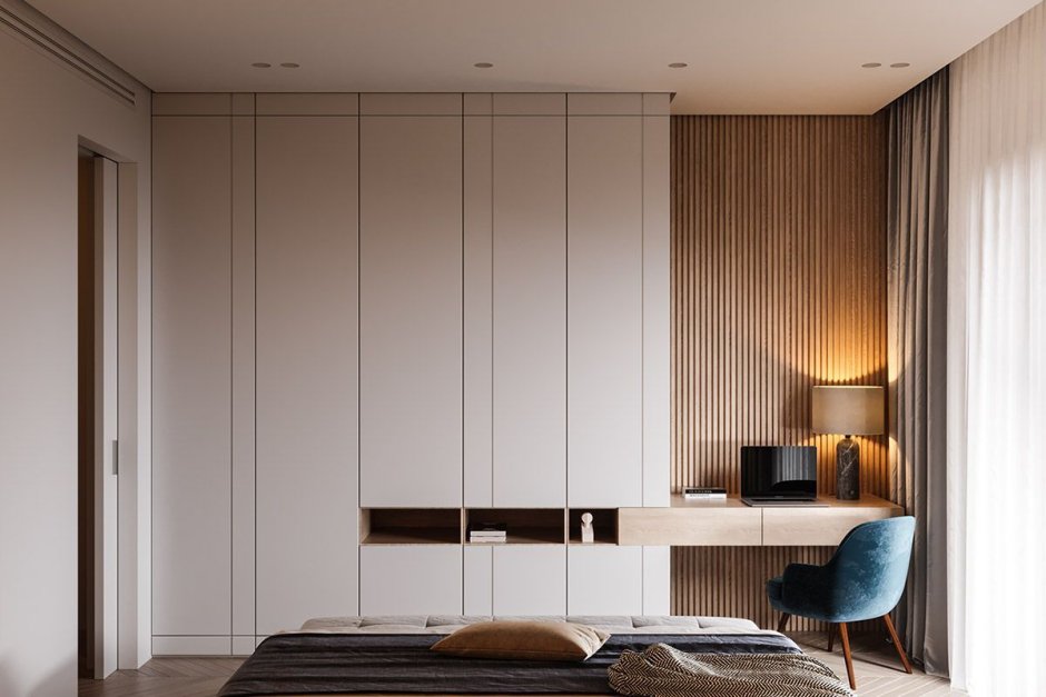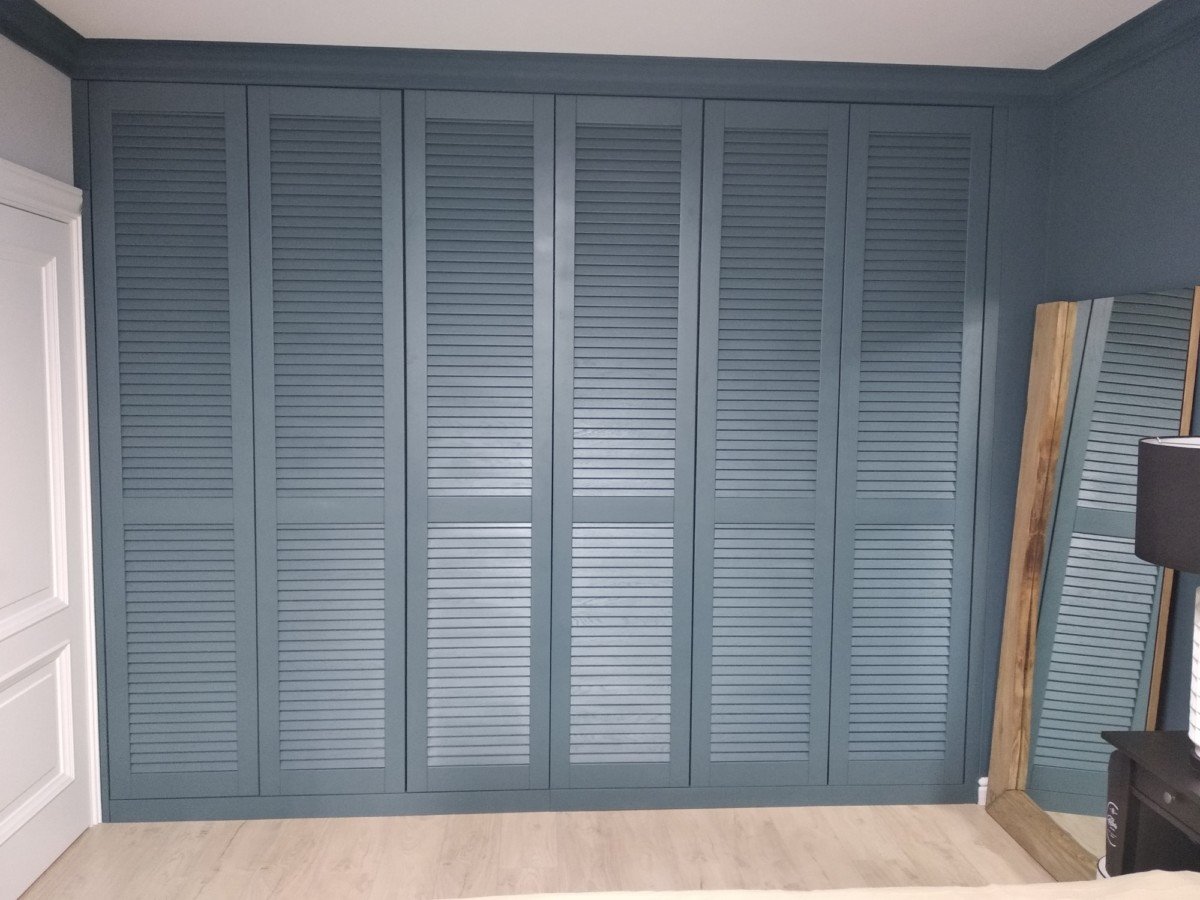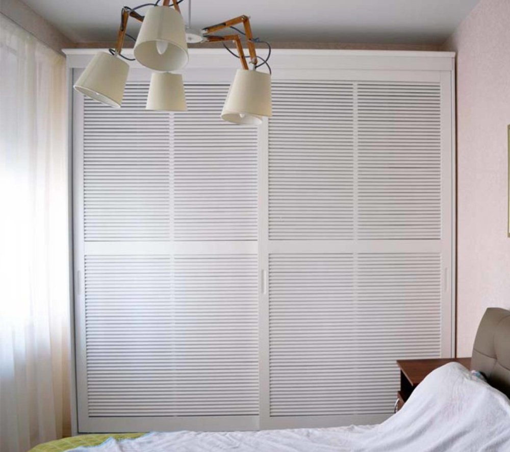 Шкаф с жалюзийными дверцами в спальне