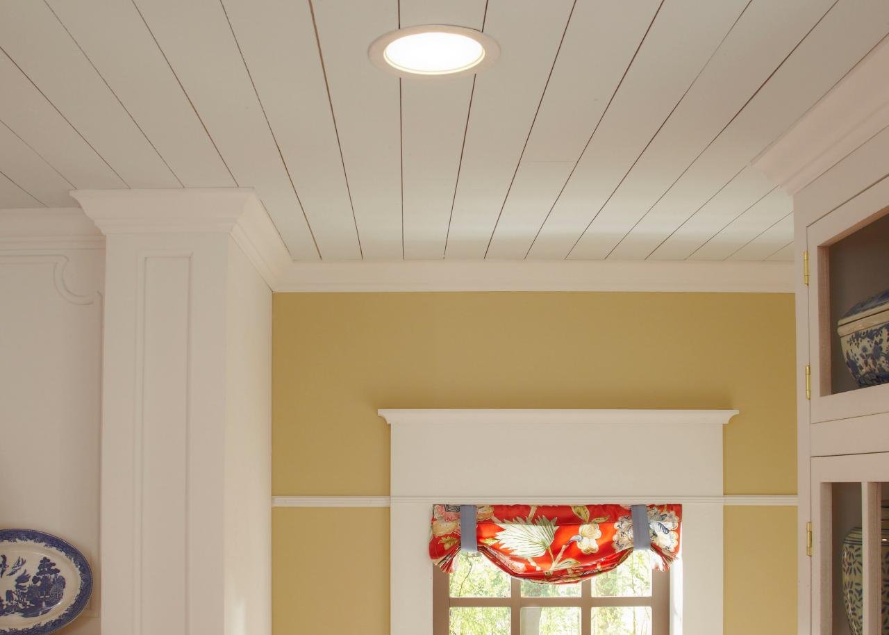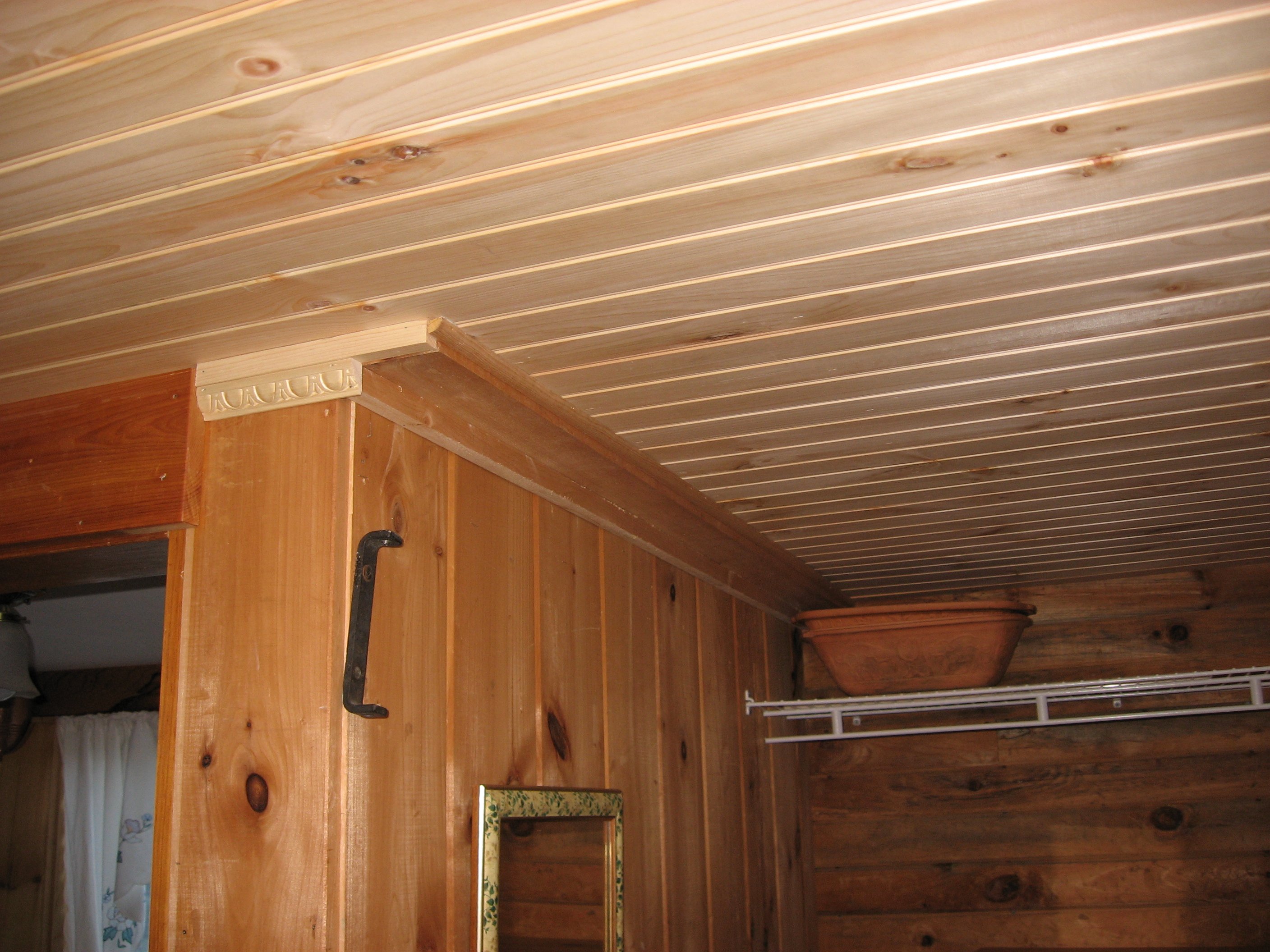 Стык вагонки на потолке
