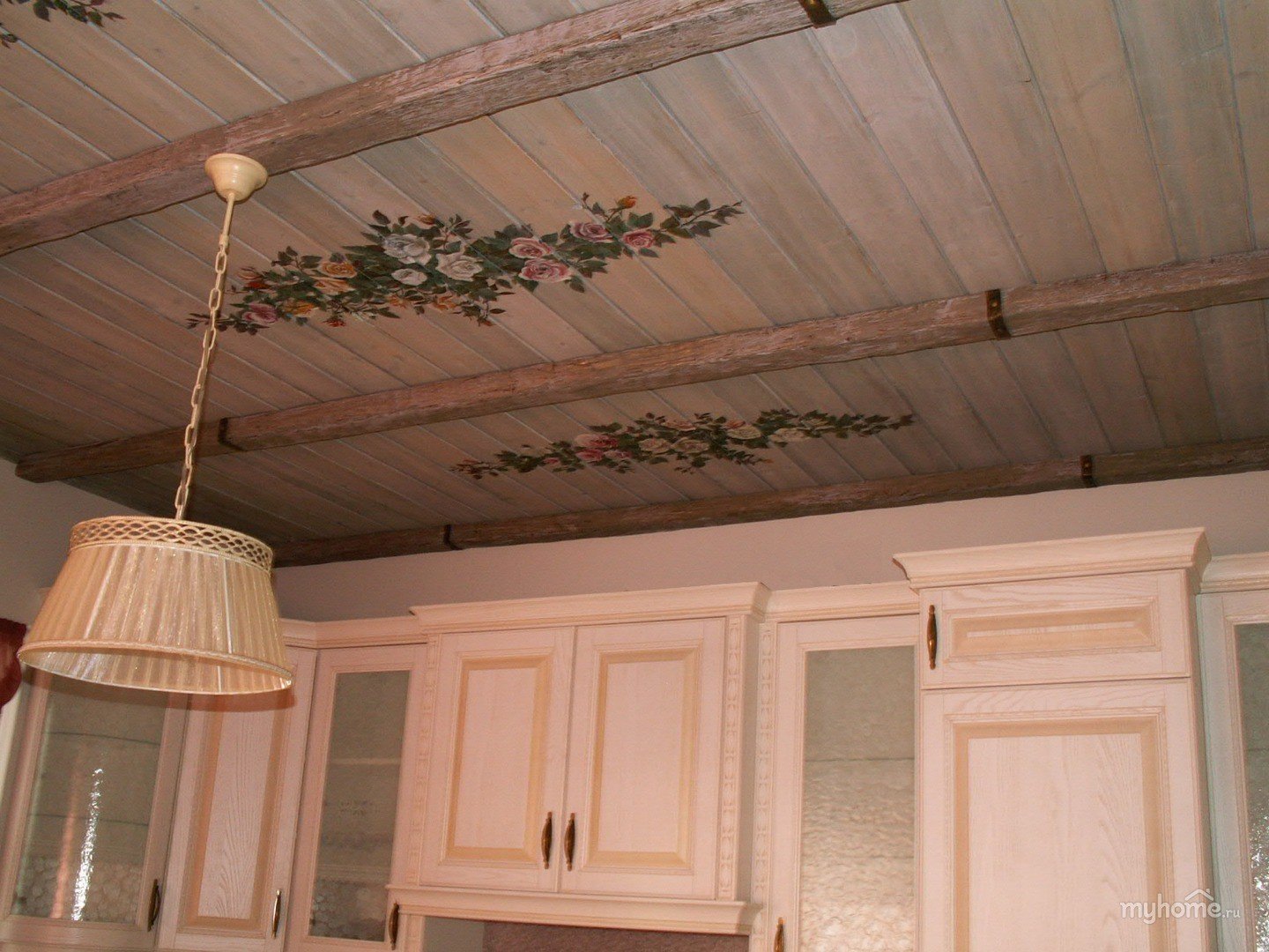 Декор потолка из вагонки