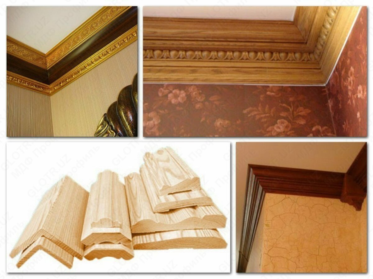Деревянный плинтус для потолка
