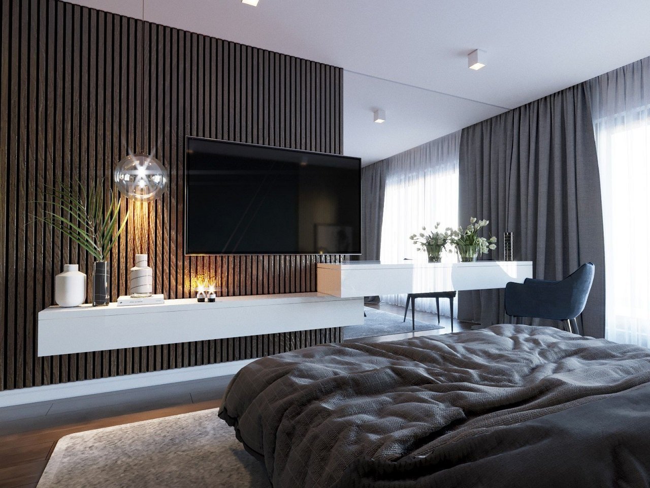 Телевизор на стене в спальне