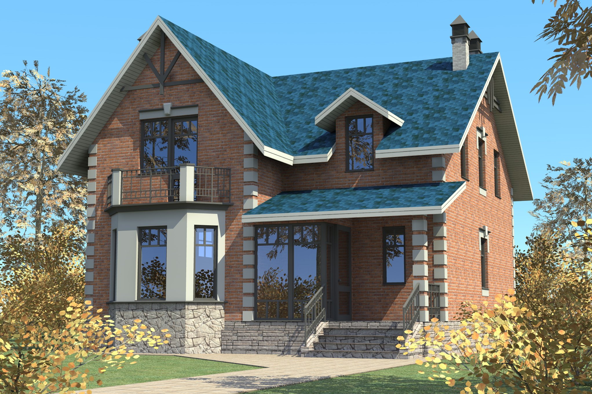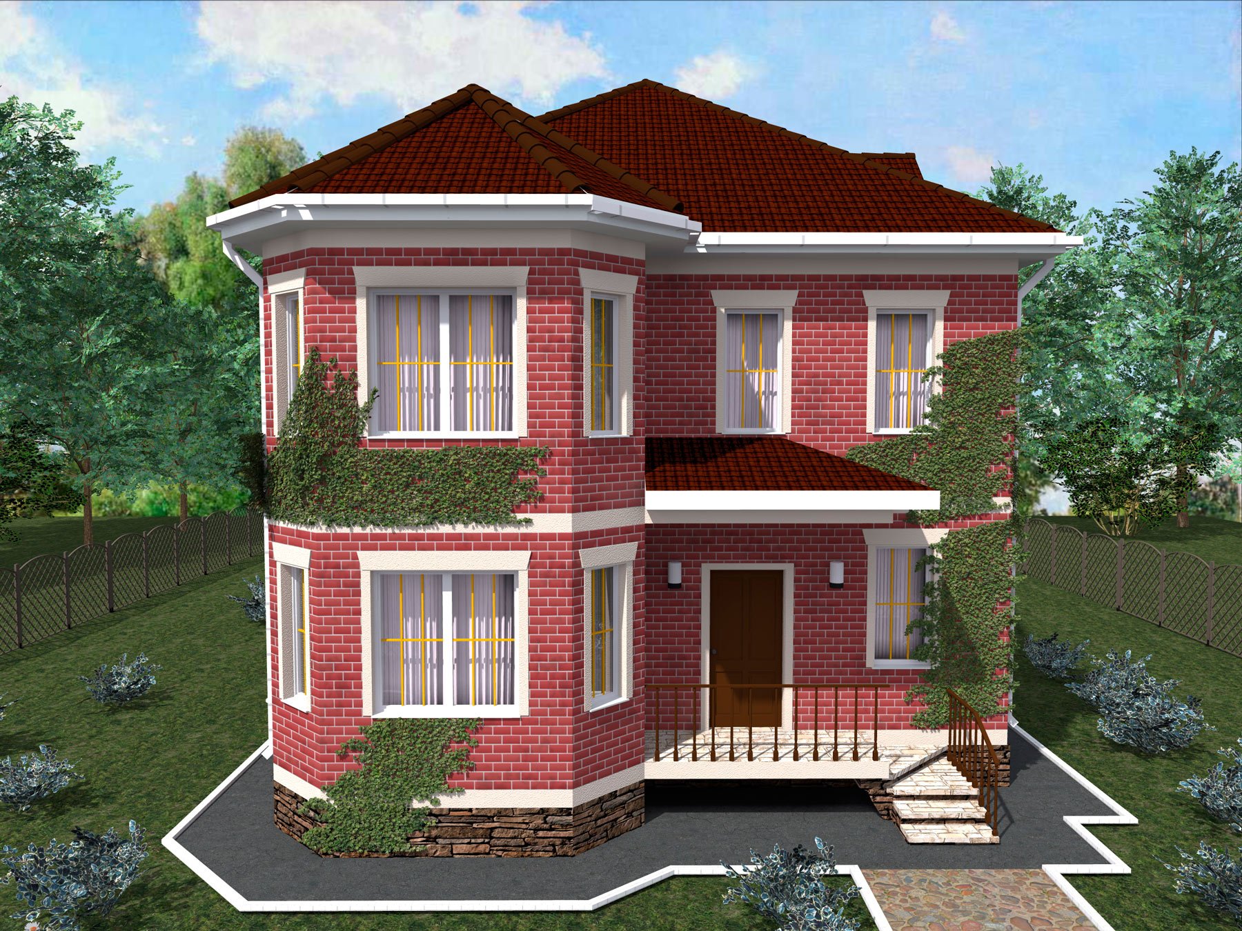 Двухэтажный дом с эркером и террасой